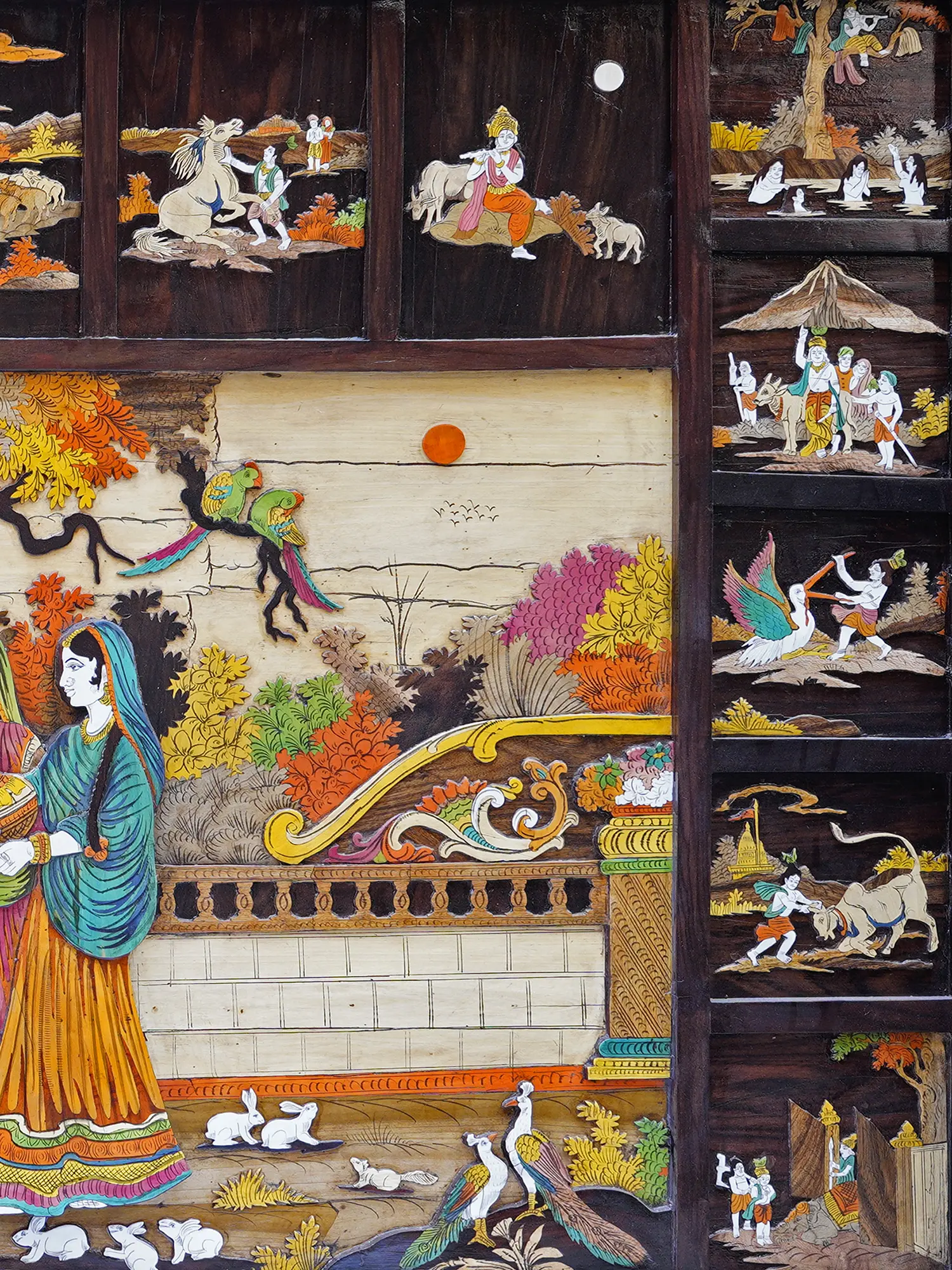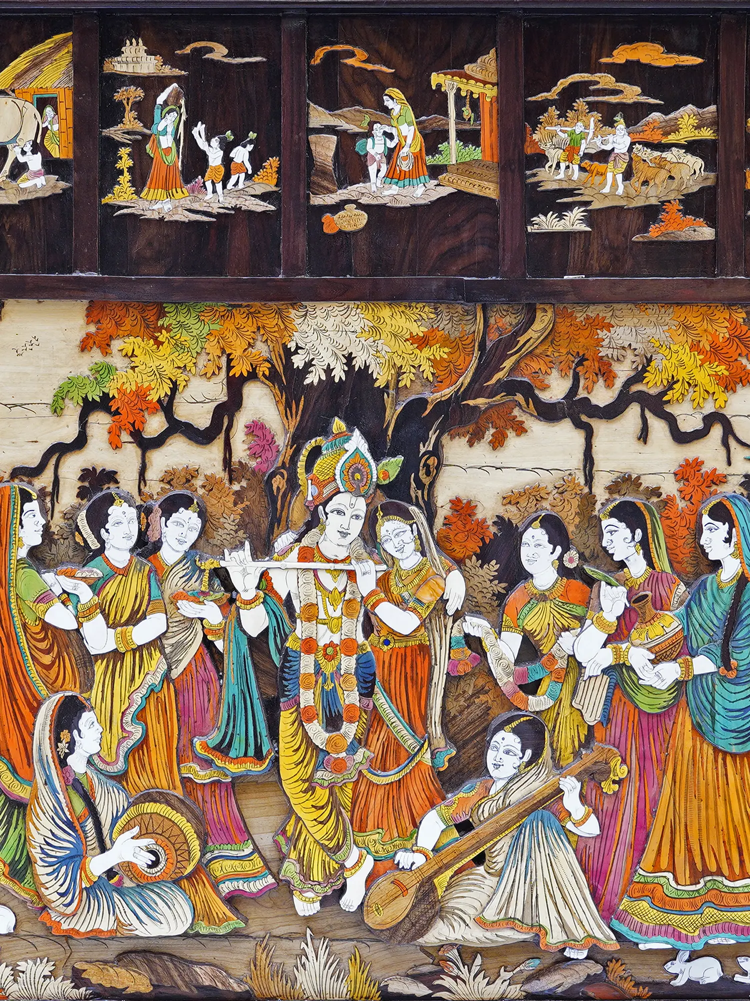73" Radha Krishna Leela - Stories of Lord Krishna | Rosewood 3D Panel with Inlay Work