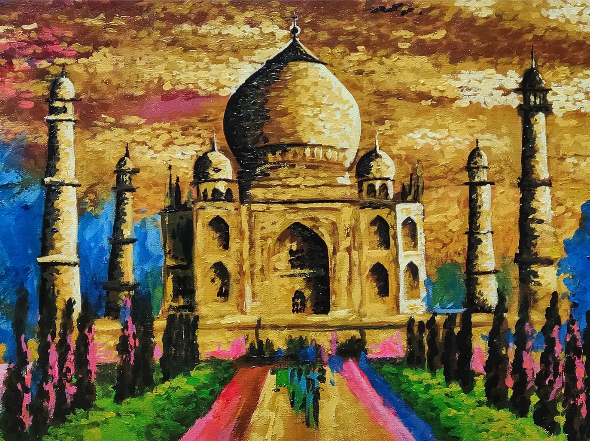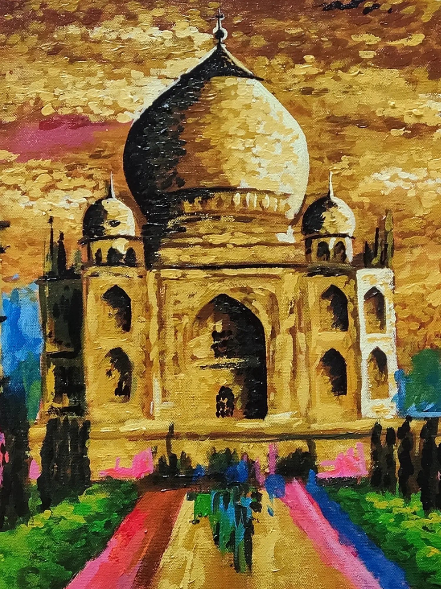 This captivating acrylic on canvas invites you to experience the grandeur of an iconic monument through a vibrant, abstract lens. Its expressive brushwork and rich palette offer a fresh perspective on a timeless symbol of love and architectural marvel.
