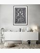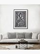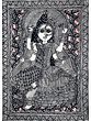 Mostly Madhubani art is sketched in natural colors of yellow, orange, red, blue, green, but the one shown here is painted in an exclusive dark color combination of black, grey and white in intricate patterns with a background of artistic leaves and pink flowers; formed in a creative upside down triangular-like border. This painting, if hung on any bright and light colored background will enhance its beauty and creativity by itself.