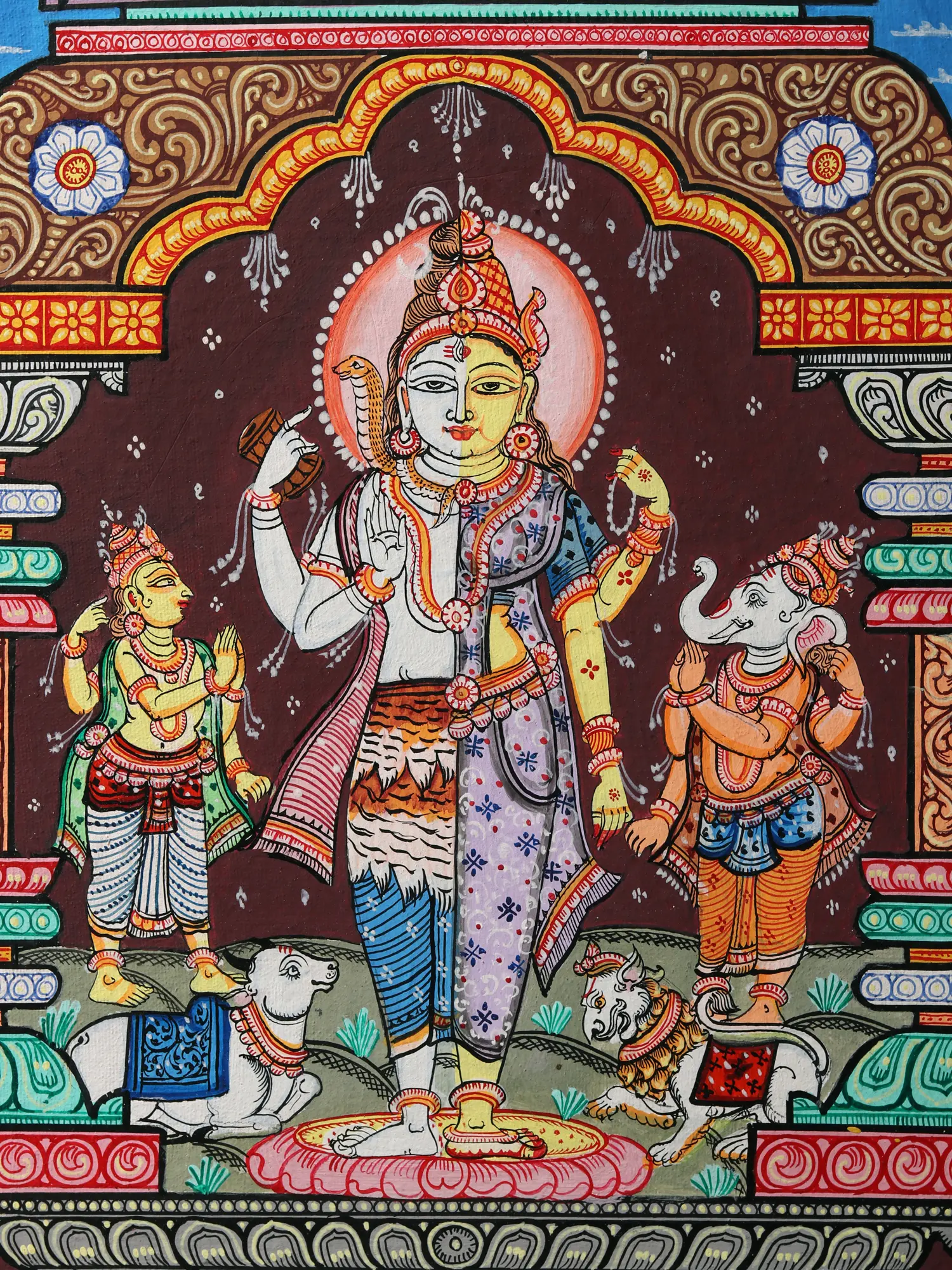 Harihara - The Deity Who is Both Shiva and Vishnu | Fine Patachitra Painting