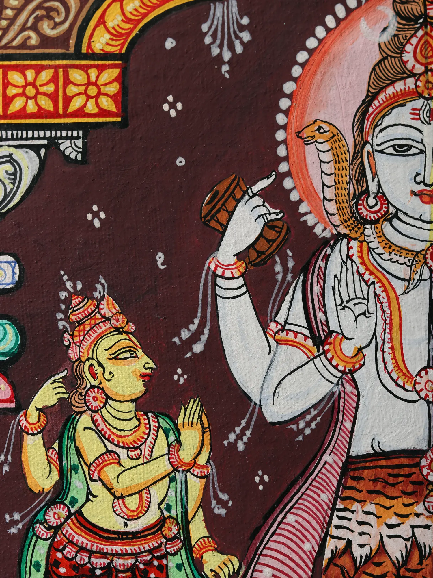 Originating from the rich cultural landscape of Odisha, India, Pattachitra painting is a revered folk art form. This particular composition draws inspiration from Hindu mythology and the philosophical concepts of duality and unity. Each brushstroke carries the weight of tradition, connecting you to a lineage of artists who have preserved these sacred stories for generations.