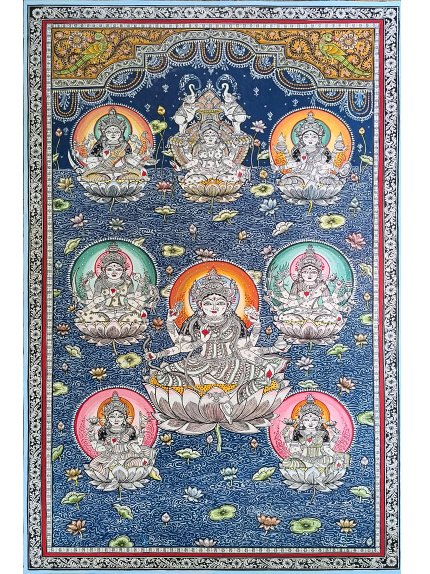 Devi Lakshmi Seated on Lotus | Kalamkari Painting