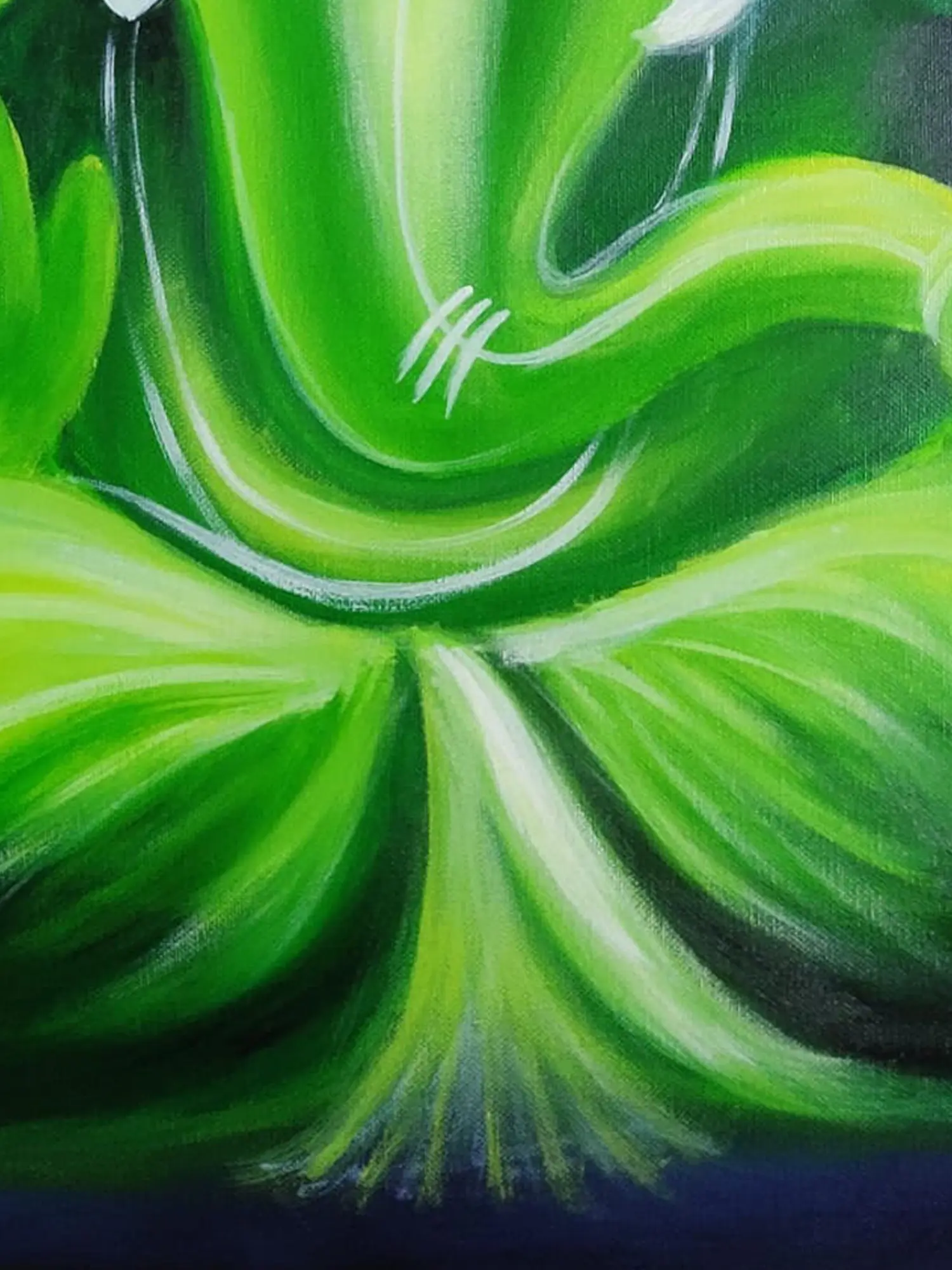 The commanding presence of the deity is amplified by a striking palette of greens, creating a sense of life and renewal. The expressive eyes draw you in, while the gentle posture conveys serenity and wisdom. Rendered on a generous canvas, this artwork offers a commanding visual impact, measuring 24 inches in height and 18 inches in width, making it an ideal statement piece for any discerning collection.