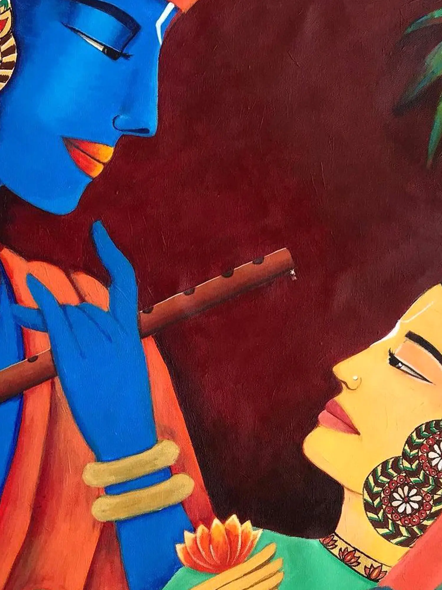 Lord Krishna And Radha | Acrylic On Canvas | Traditional Kerala Mural Art