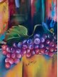 Throughout history, grapes and wine have held significant symbolic value across diverse cultures. In Greek mythology, Dionysus, the god of wine, revelry, and theatre, embodied the intoxicating power of wine, both its pleasures and dangers. The grapevine, a symbol of fertility and abundance, often appeared in his iconography. This artwork subtly echoes these themes, celebrating the fruitful bounty associated with wine and its divine origins. Similarly, the rich colors and textures evoke the feeling of abundance and celebration, echoing the joyous festivals held in ancient times in honor of the gods and the harvest. The artist's composition allows you to ponder on the dual nature of the grape – its potential for pleasure and its link to intoxication.