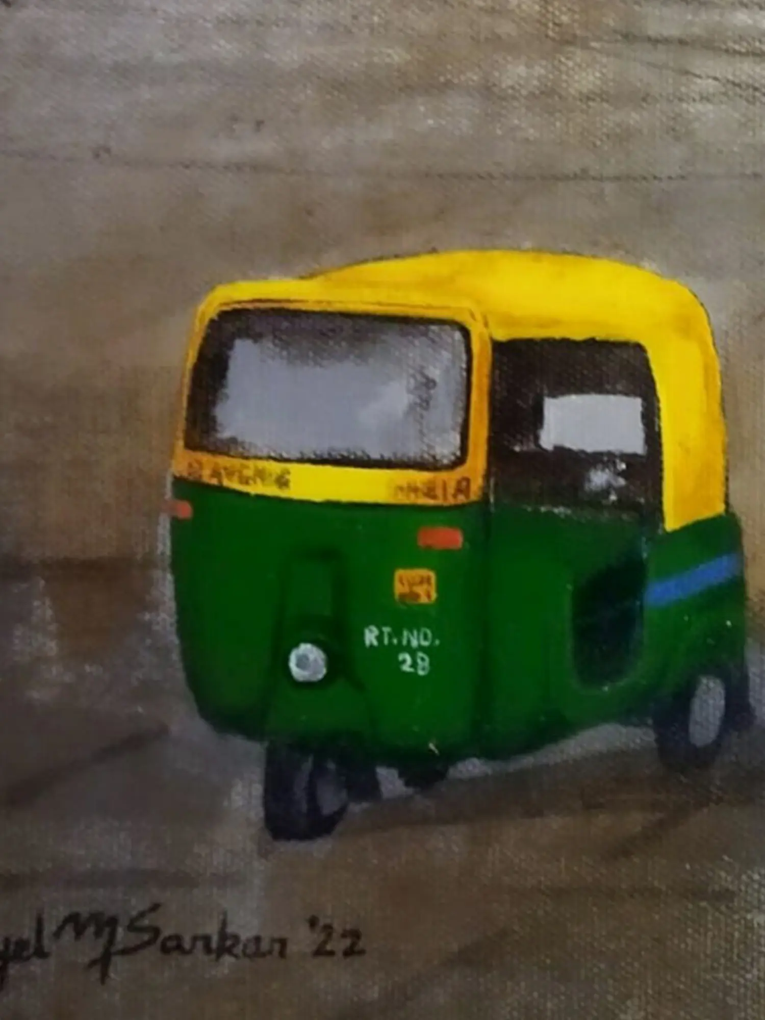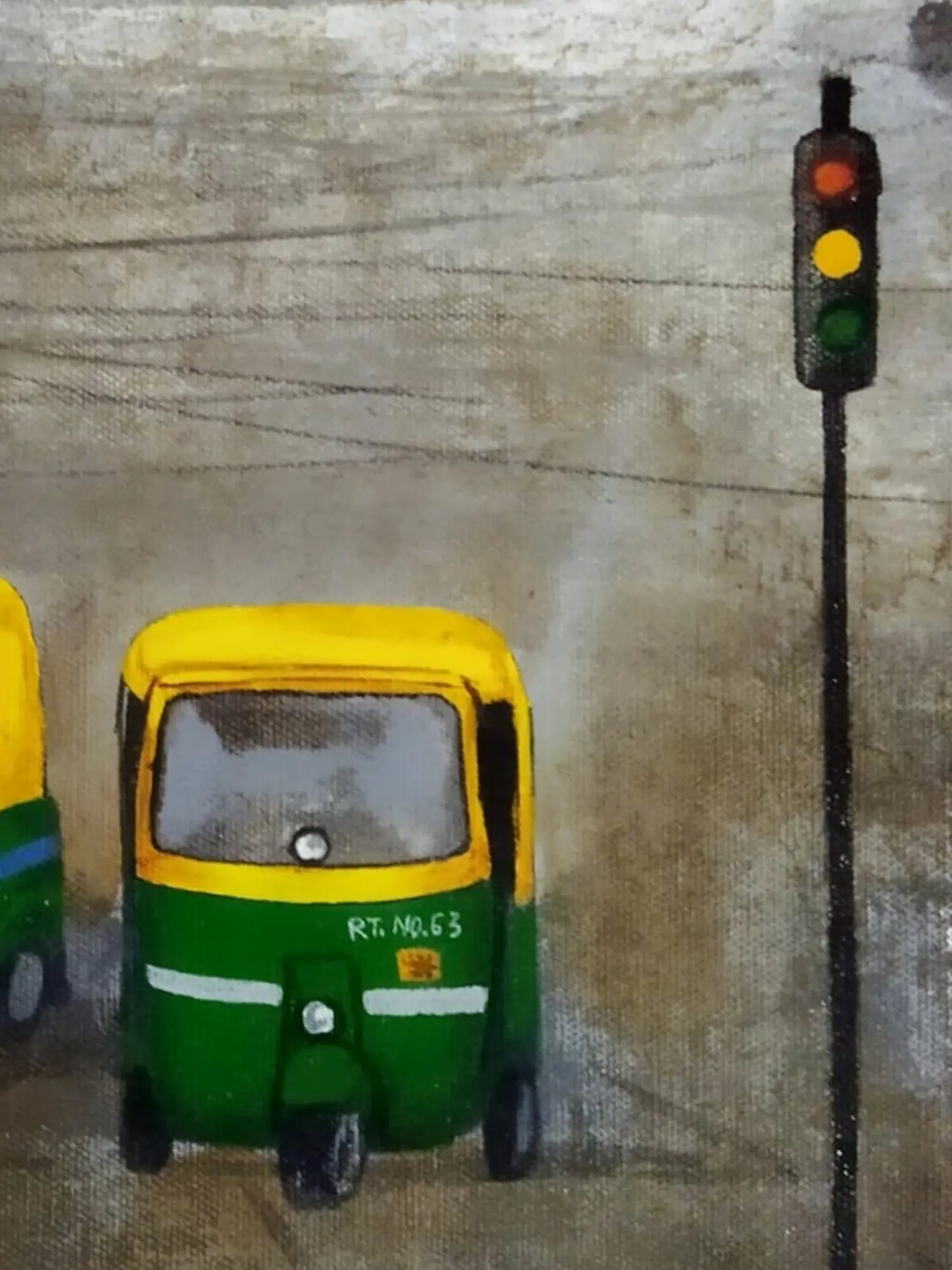 Auto Rickshaw On Signal | Acrylic On Canvas | By Payel Mitra