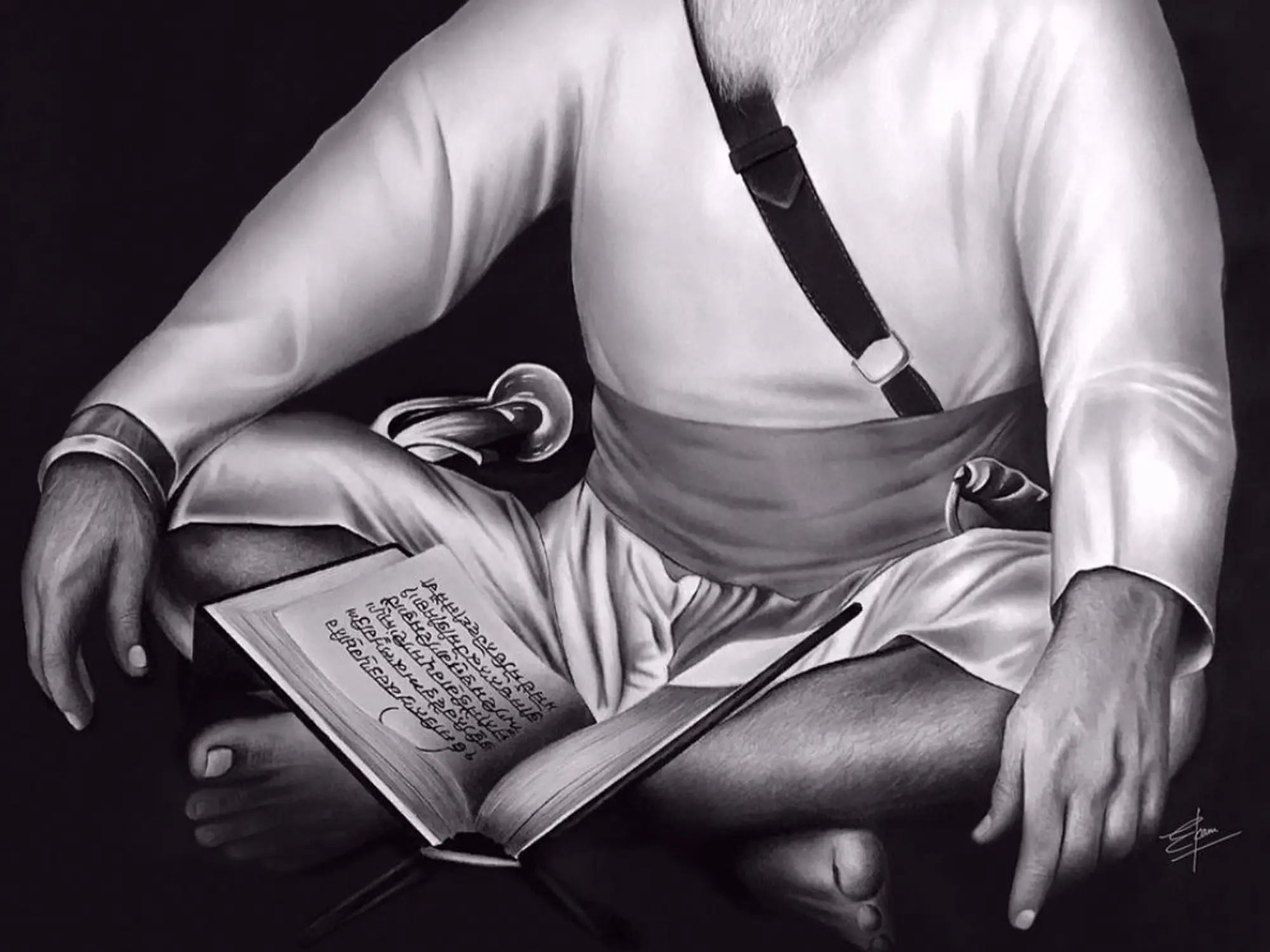 This powerful graphite sketch portrays Baba Deep Singh Ji, a revered Sikh warrior-saint. The artist's use of bold lines and dramatic shading conveys Baba Deep Singh Ji's unwavering courage and unwavering devotion to his faith. This artwork serves as a testament to the concept of "Khalsa" - divine power - embodied in the pursuit of righteousness and justice.