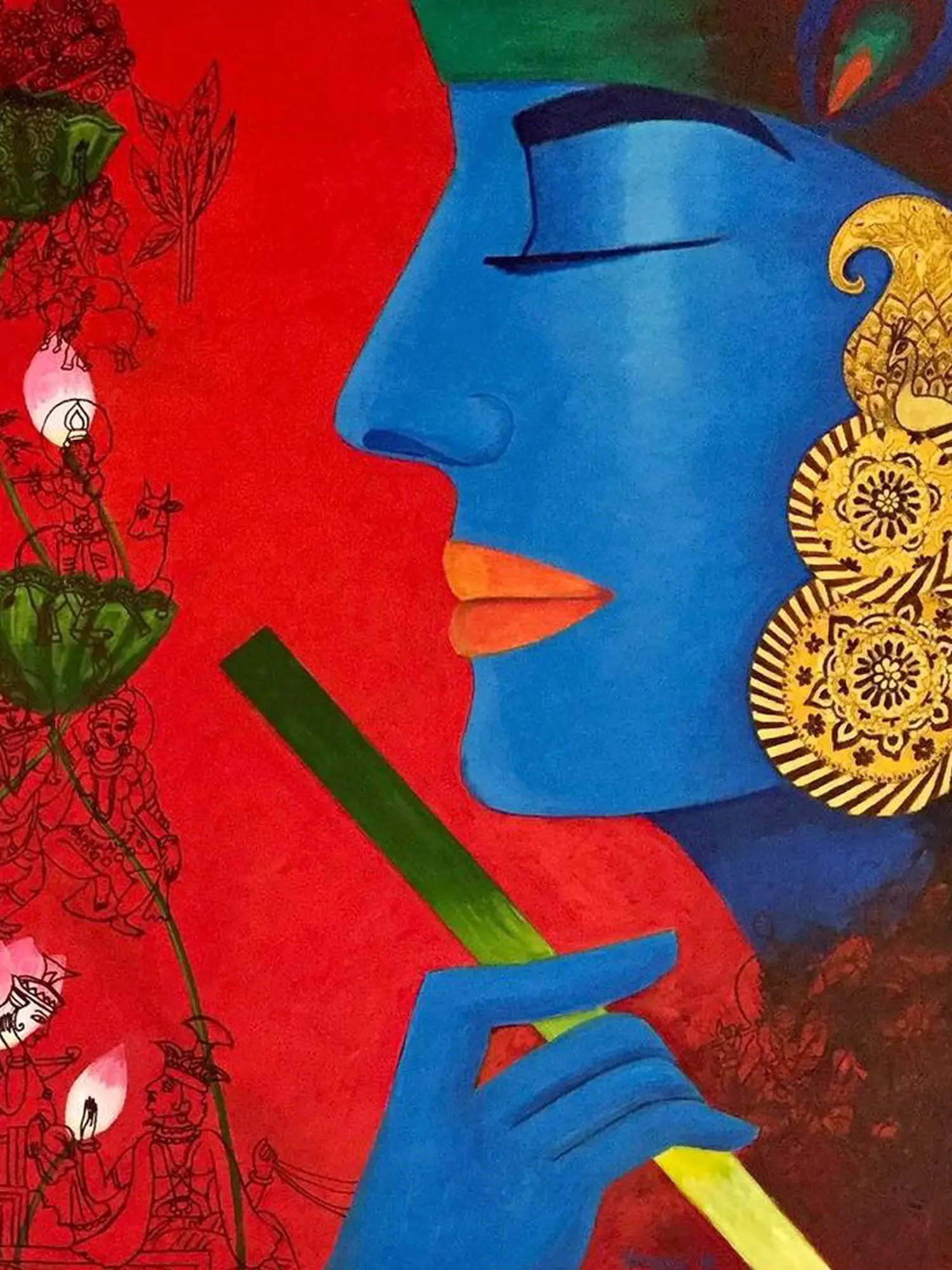 Lord Krishna And Radha | Acrylic On Canvas | Traditional Kerala Mural Art