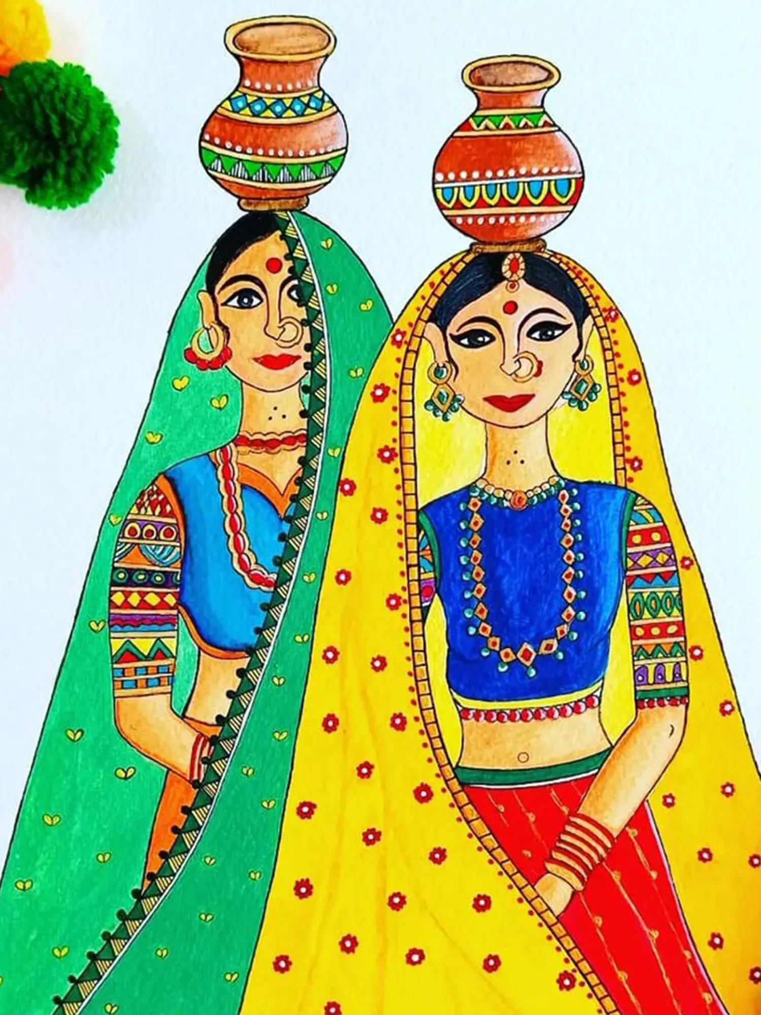 The images of women carrying pitchers on their heads are a representation that solidifies the role of women as providers. Water or Jal is considered the most essential element for human existence and the women who carry pitchers and walk for kilometers to bring it to their families are no doubt the providers and divine beings.
