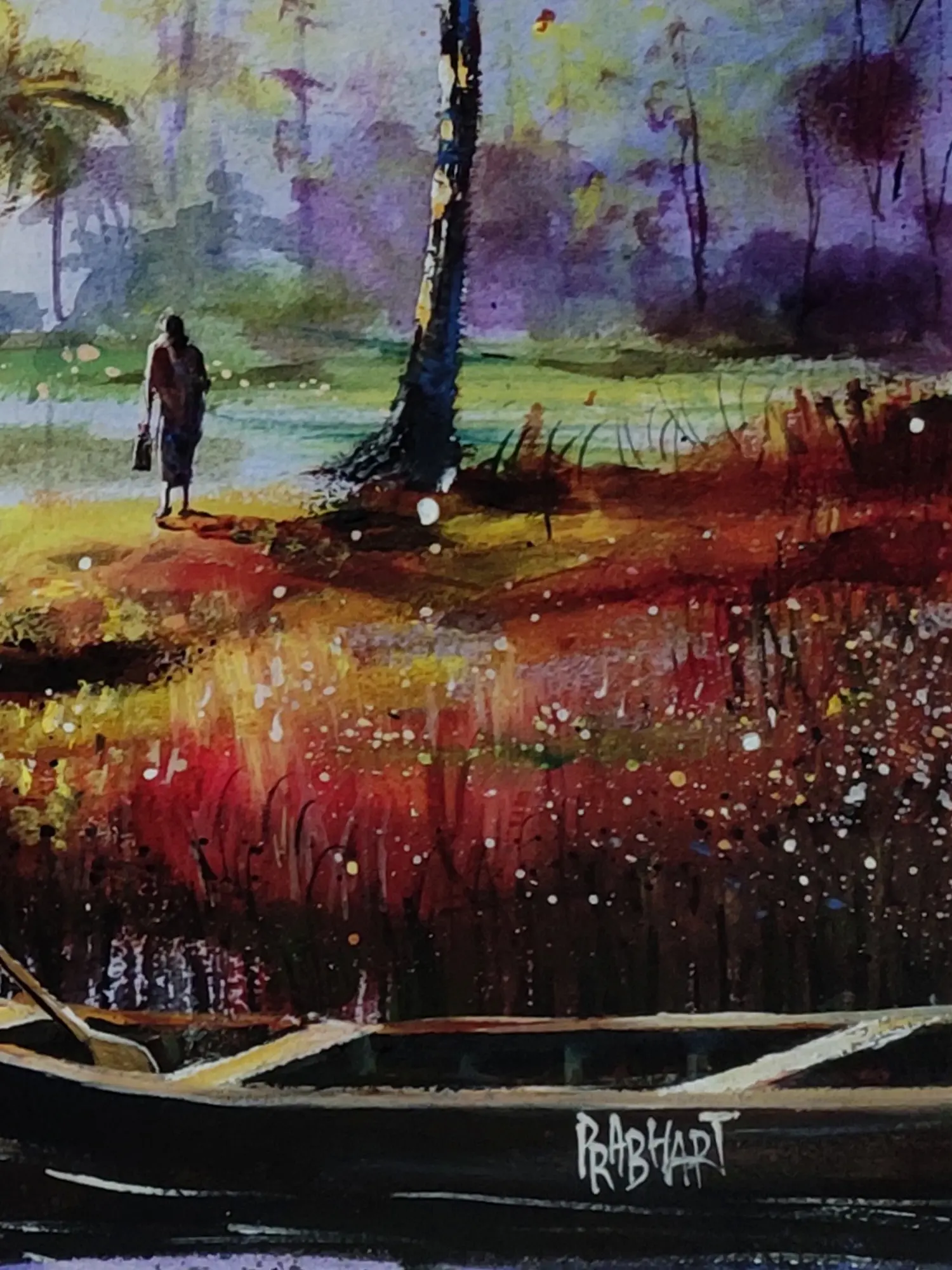 Crafted with masterful skill using vibrant acrylics on paper, this piece showcases the artist Prabhas Parappur's exceptional talent. You'll appreciate the delicate layering of color and the subtle textures that bring this scene to life. Each stroke is a testament to years of dedication and a deep understanding of the medium, resulting in a work of enduring quality.