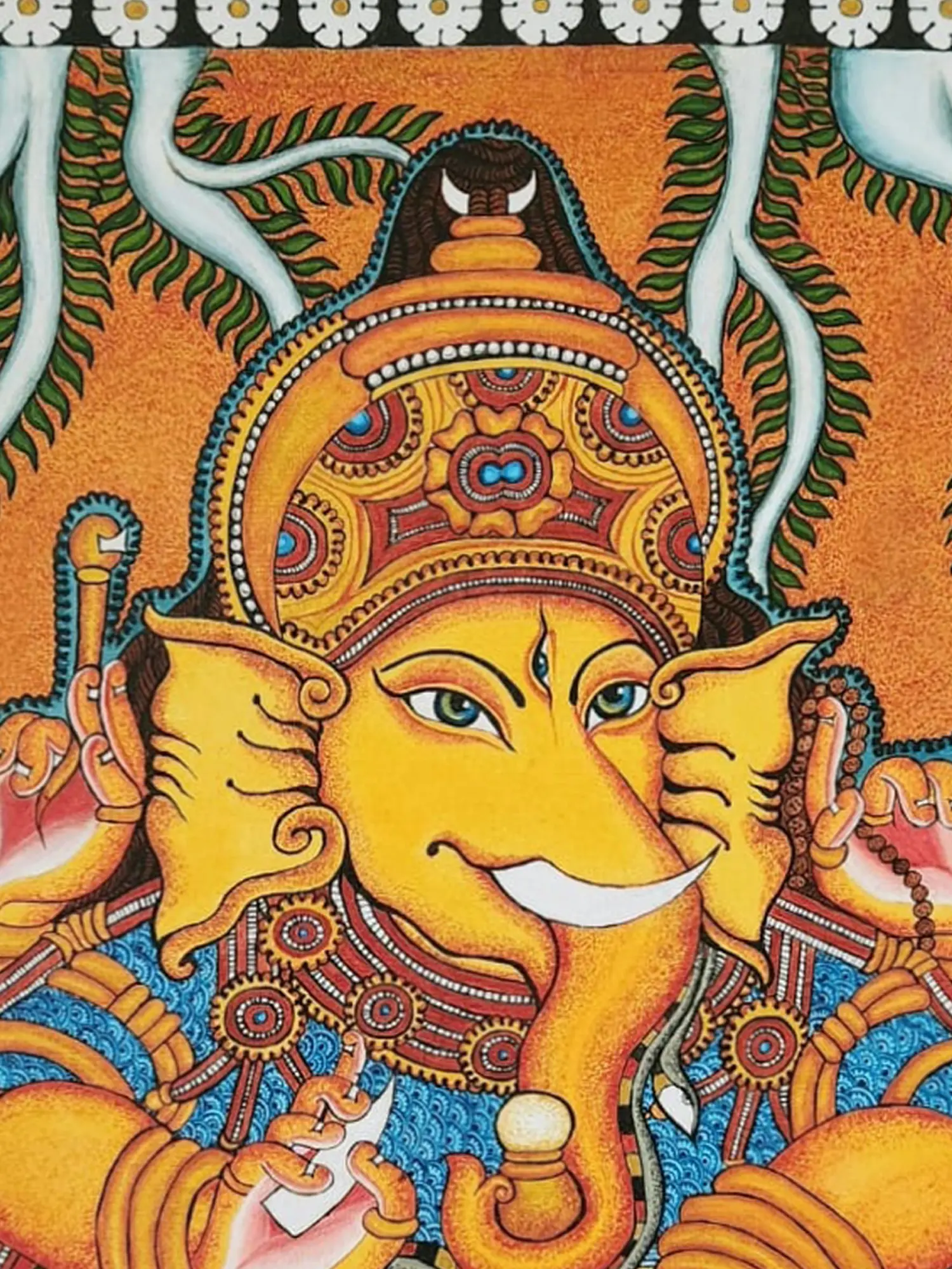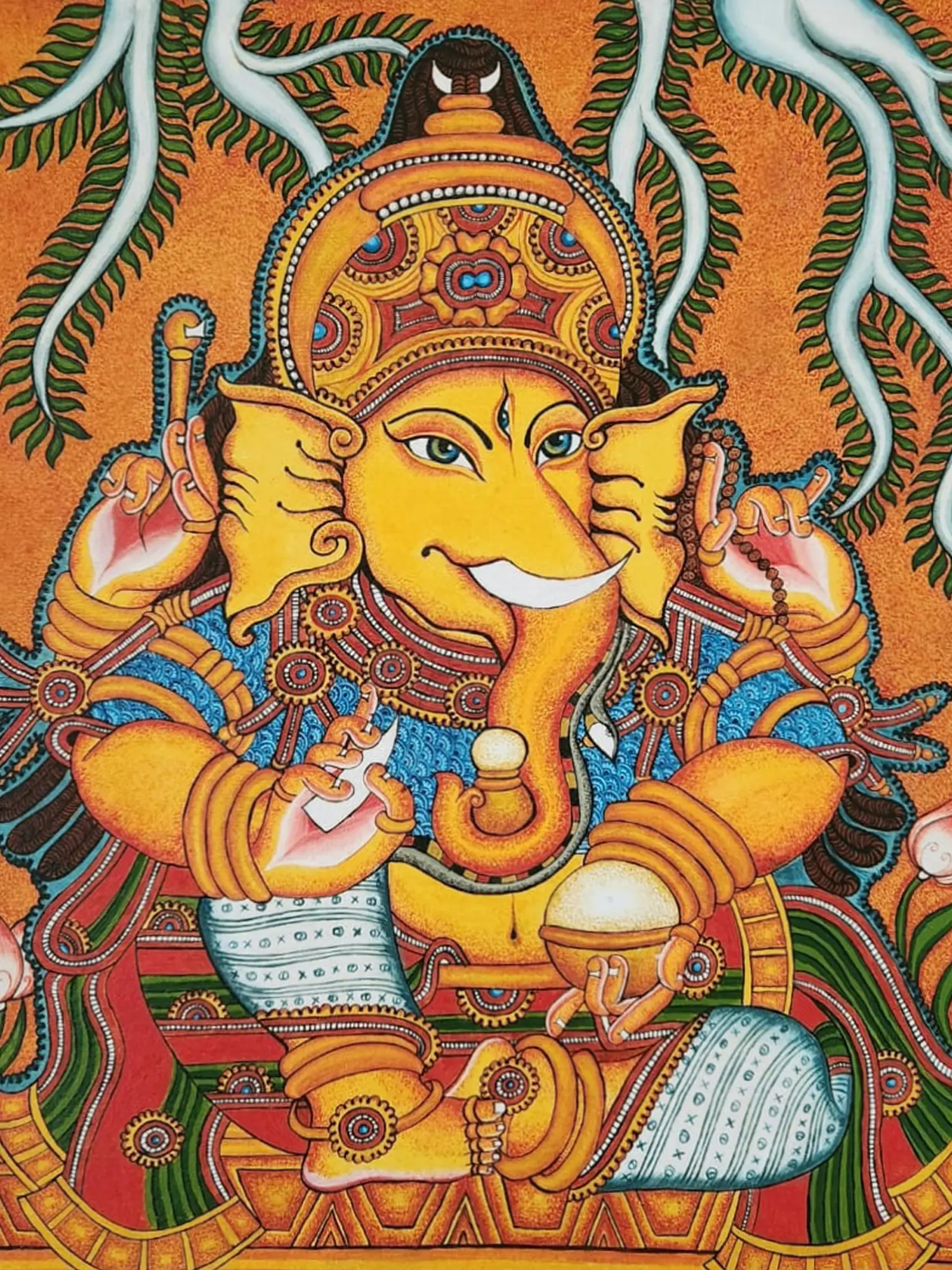 Four-armed Blessing Ganesha with Noose, Conch and Laddoo