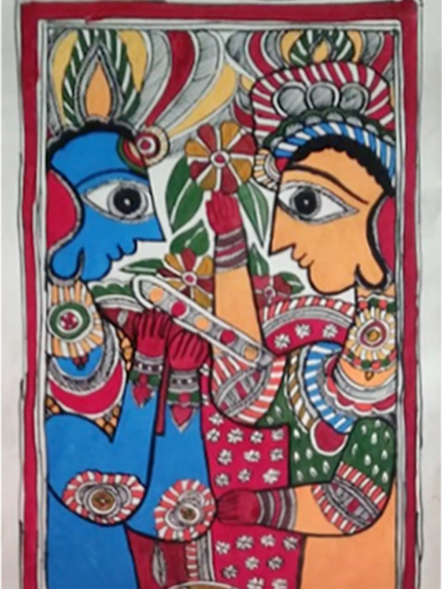 Archana Jha's creation becomes a testament to the enduring beauty of folk art, ensuring that the cultural richness and stories of love, devotion, and spirituality are preserved and cherished through the expressive medium of traditional paintings.