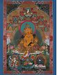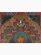 A Thangka is a traditional Tibetan Buddhist painting that usually depicts a Buddhist Deity (Buddha or Bodhisattva), a scene, or a mandala. These paintings are considered important paraphernalia in Buddhist rituals. They are used to teach the life of the Buddha, various lamas, and Bodhisattvas to the monastic students, and are also useful in visualizing the deity while meditating. One of the most important subjects of thangkas is the Bhavacakra (the wheel of life) which depicts the Art of Enlightenment. It is believed that Thangka paintings were developed over the centuries from the murals, of which only a few can be seen in the Ajanta caves in India and the Mogao caves in Gansu Province, Tibet. Thangkas are painted on cotton or silk applique and are usually small in size. The artist of these paintings is highly trained and has a proper understanding of Buddhist philosophy, knowledge, and background to create a realistic and bona fide painting.