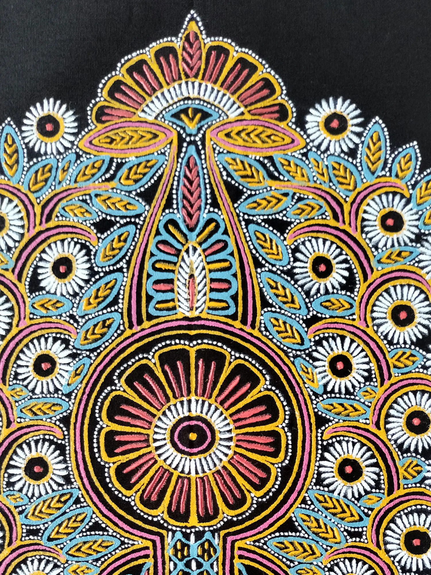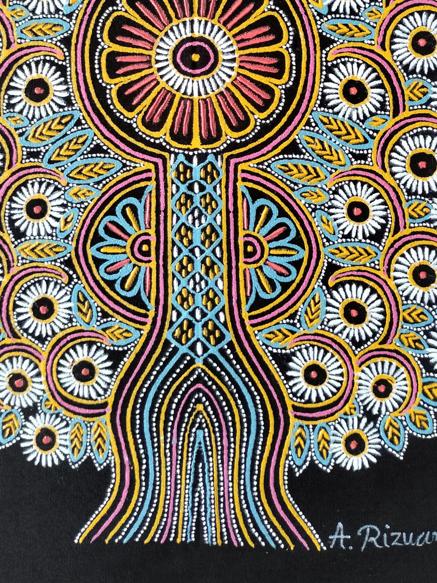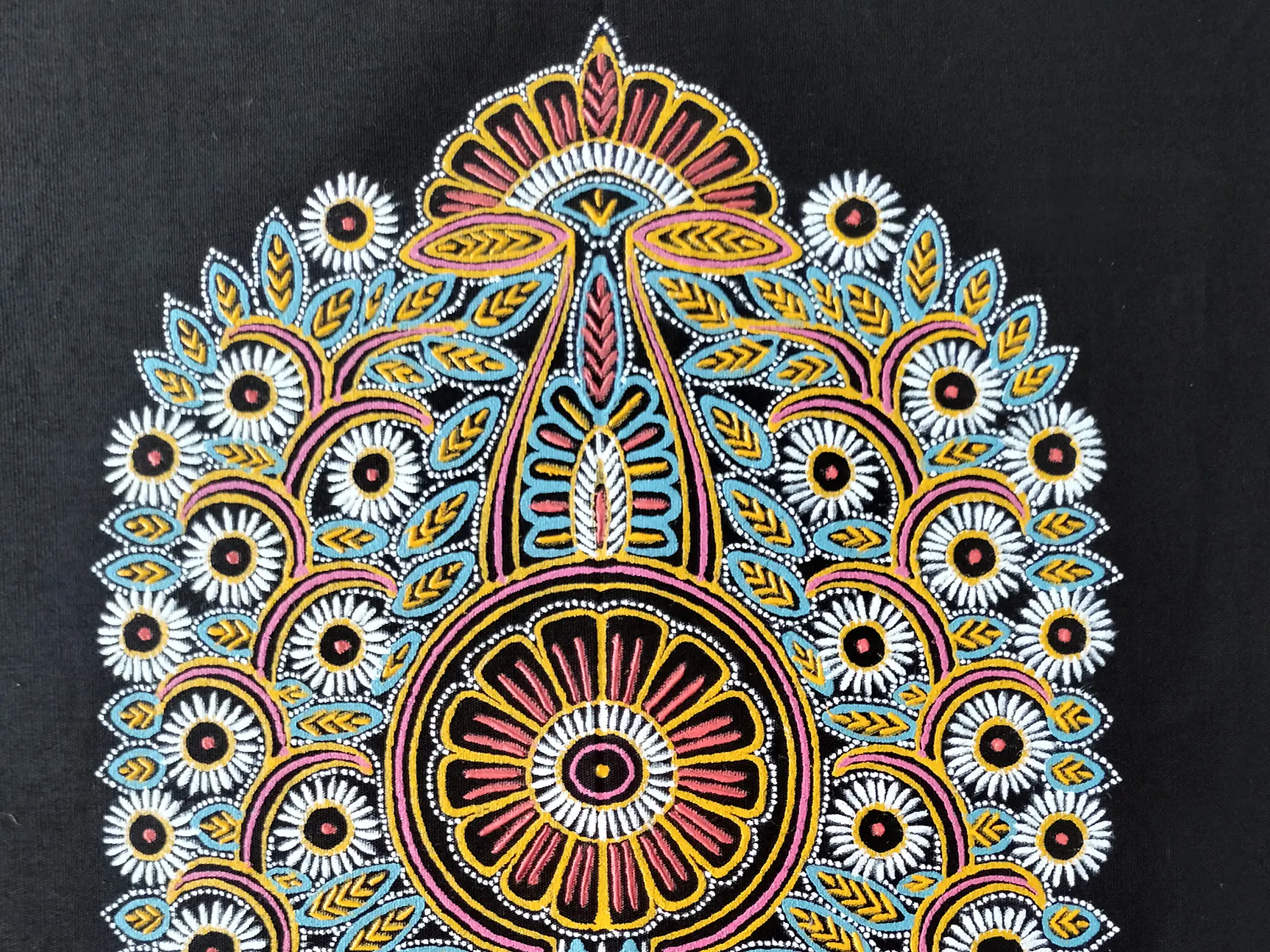 Originating in Kutch, Rogan paintings are a traditional art form using castor oil as a base. The significance lies in its intricate patterns and natural mineral colors, symbolizing cultural richness. Rizwan Khatri's "Beautiful Tree of Rogan Painting" serves as a testament to preserving this art. Various pastel shades delicately depict the tree, adding a serene charm.