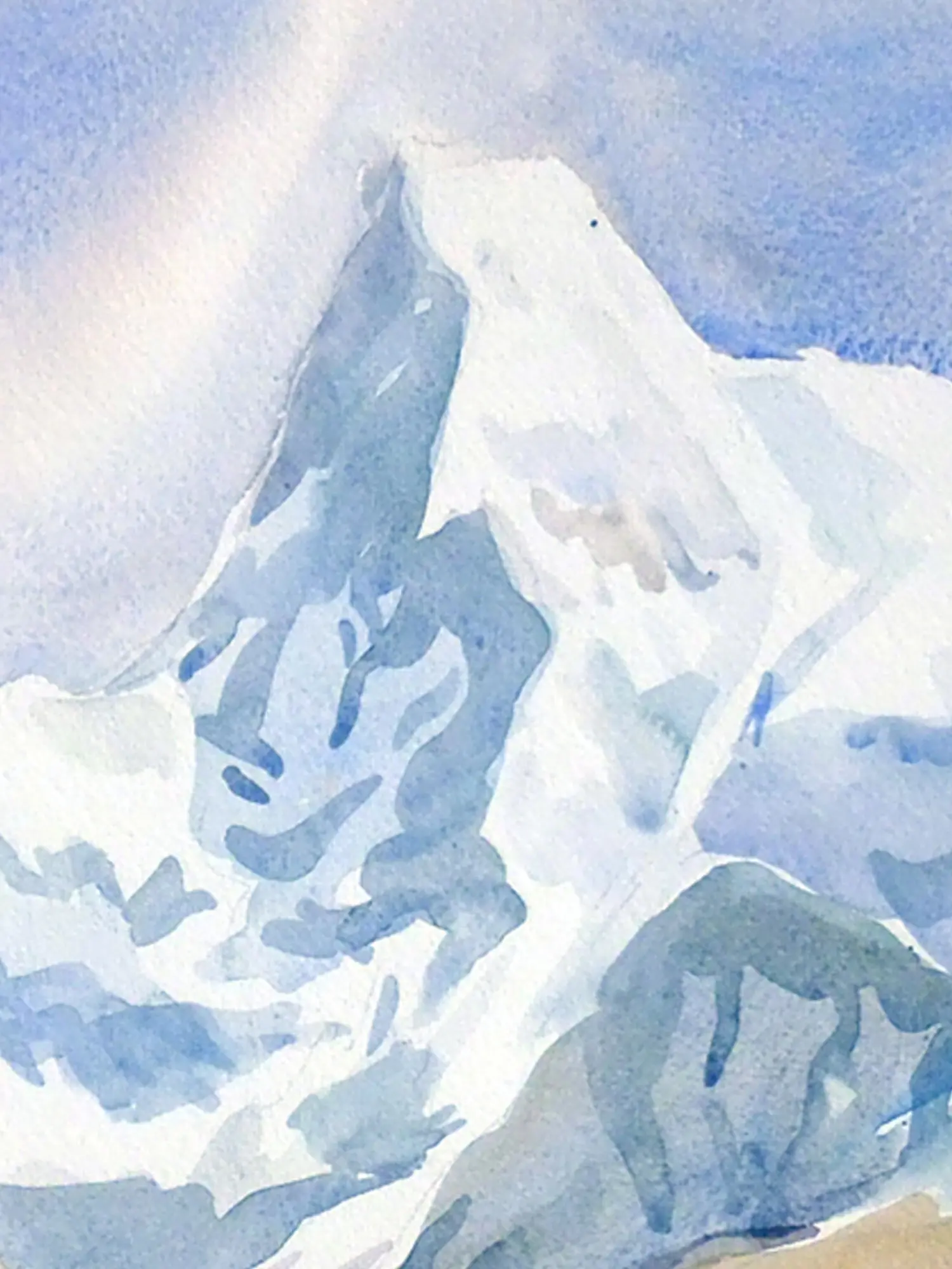 Beauty of himalaya mountain landscape painting on watercolor paper.