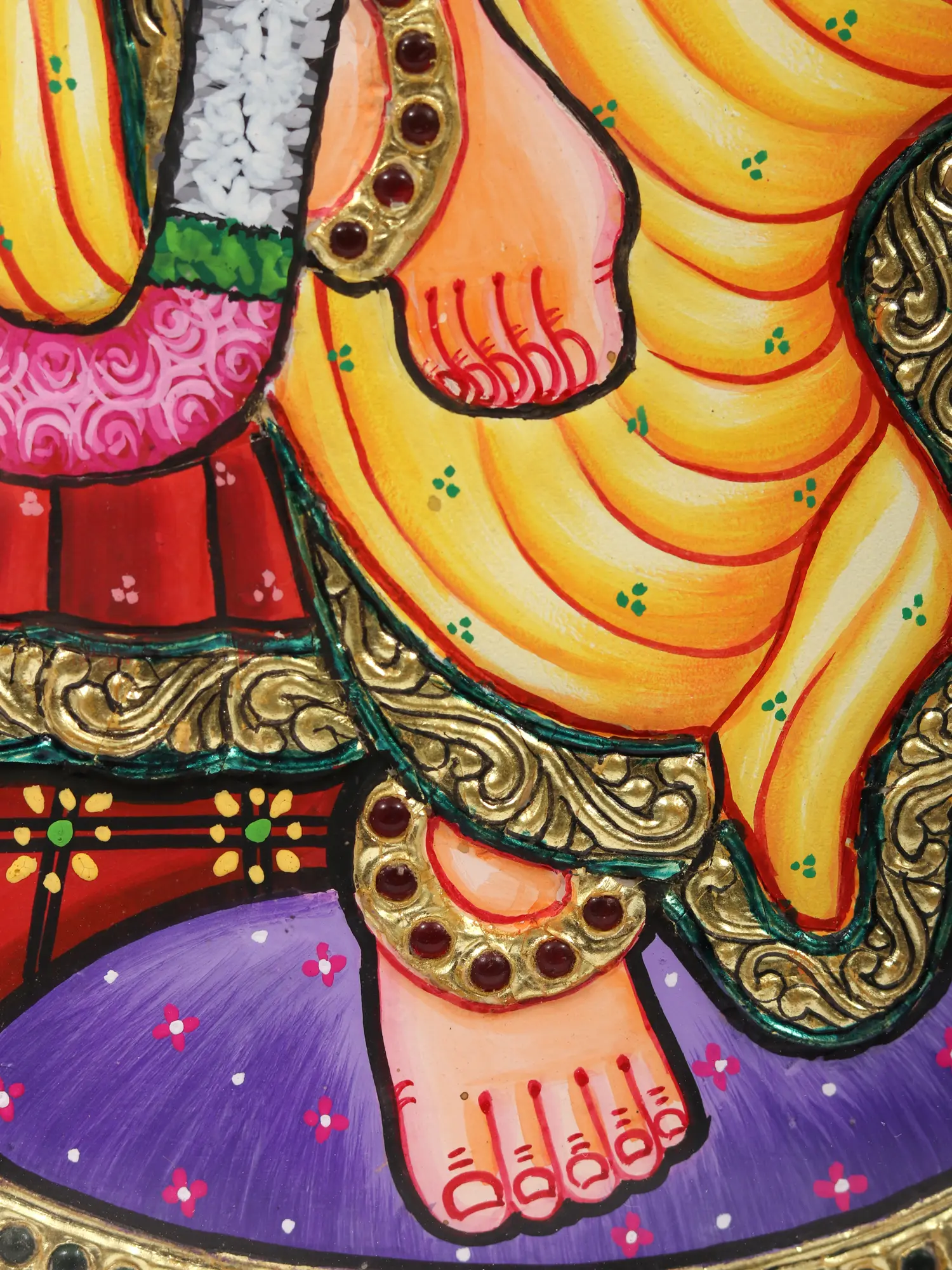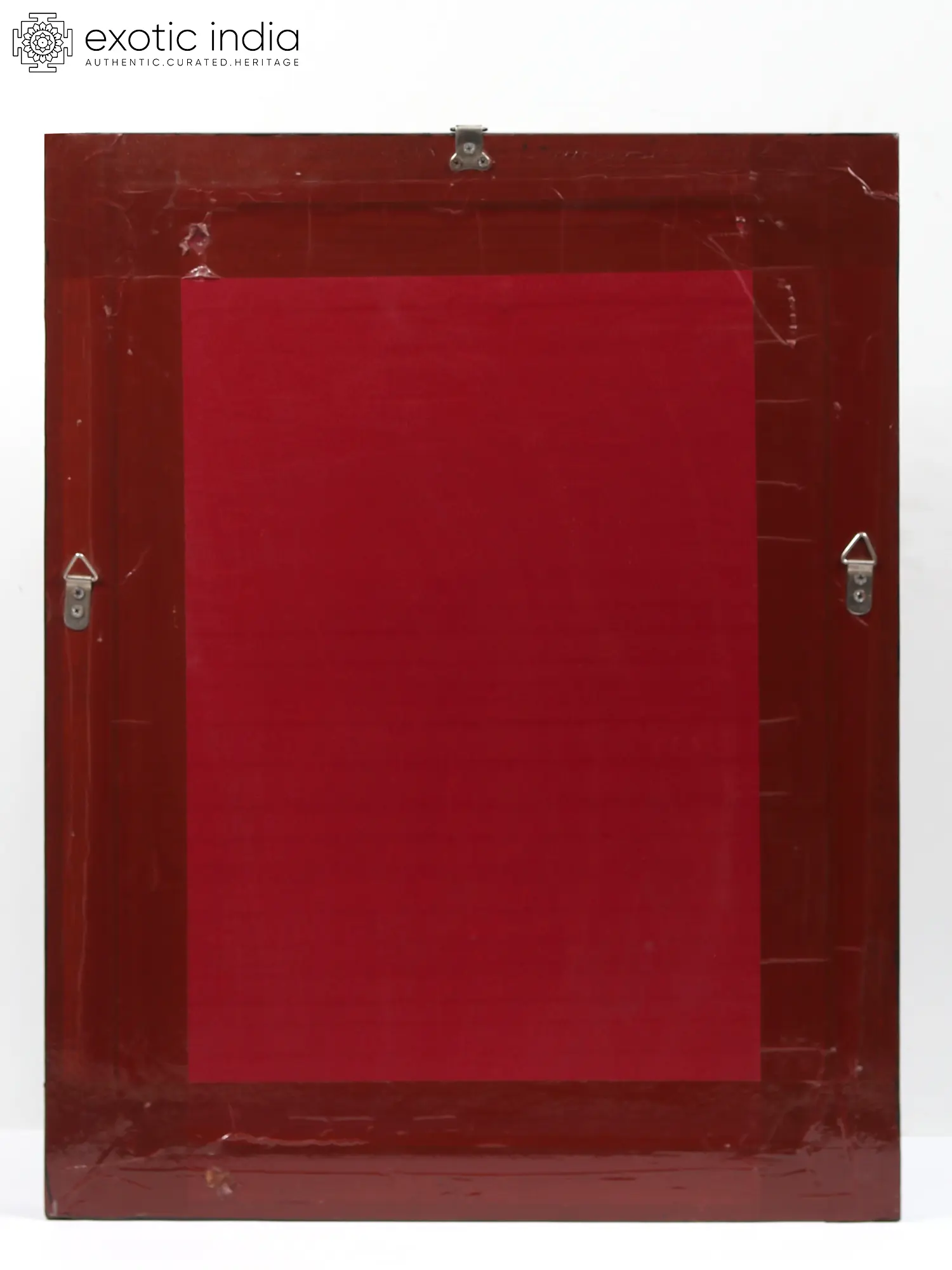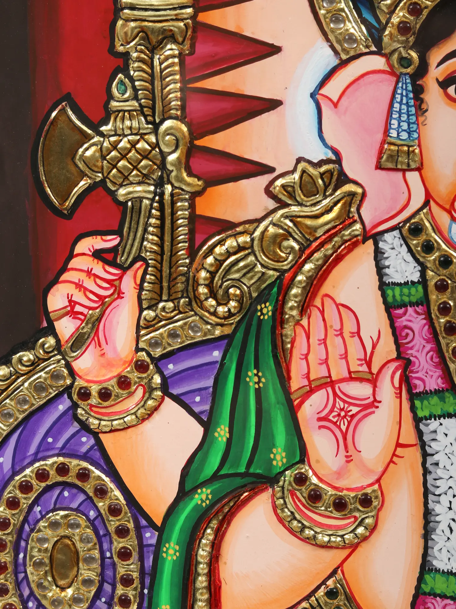 Chaturbhuj Ganesha Glass Painting with Wooden Frame