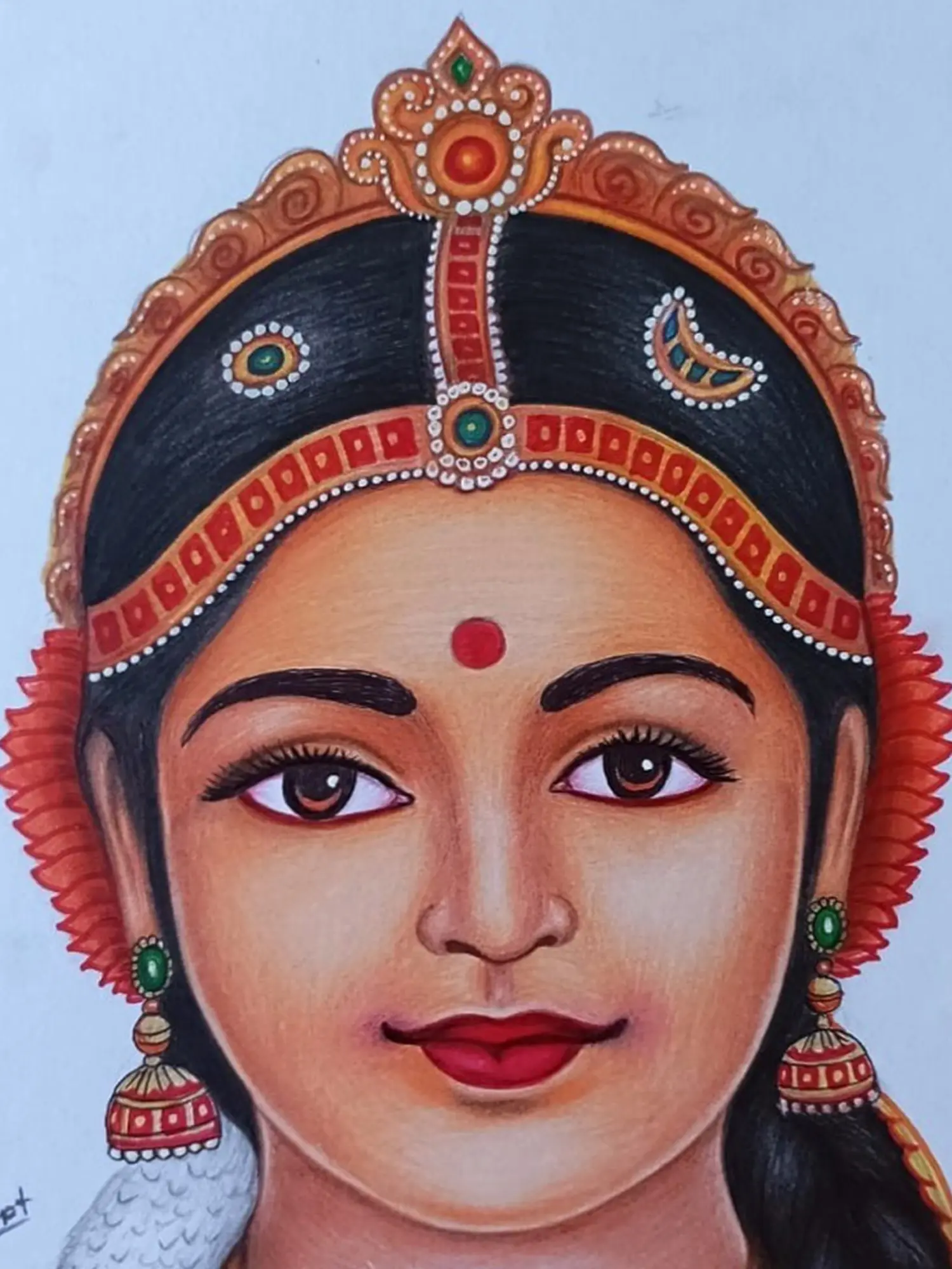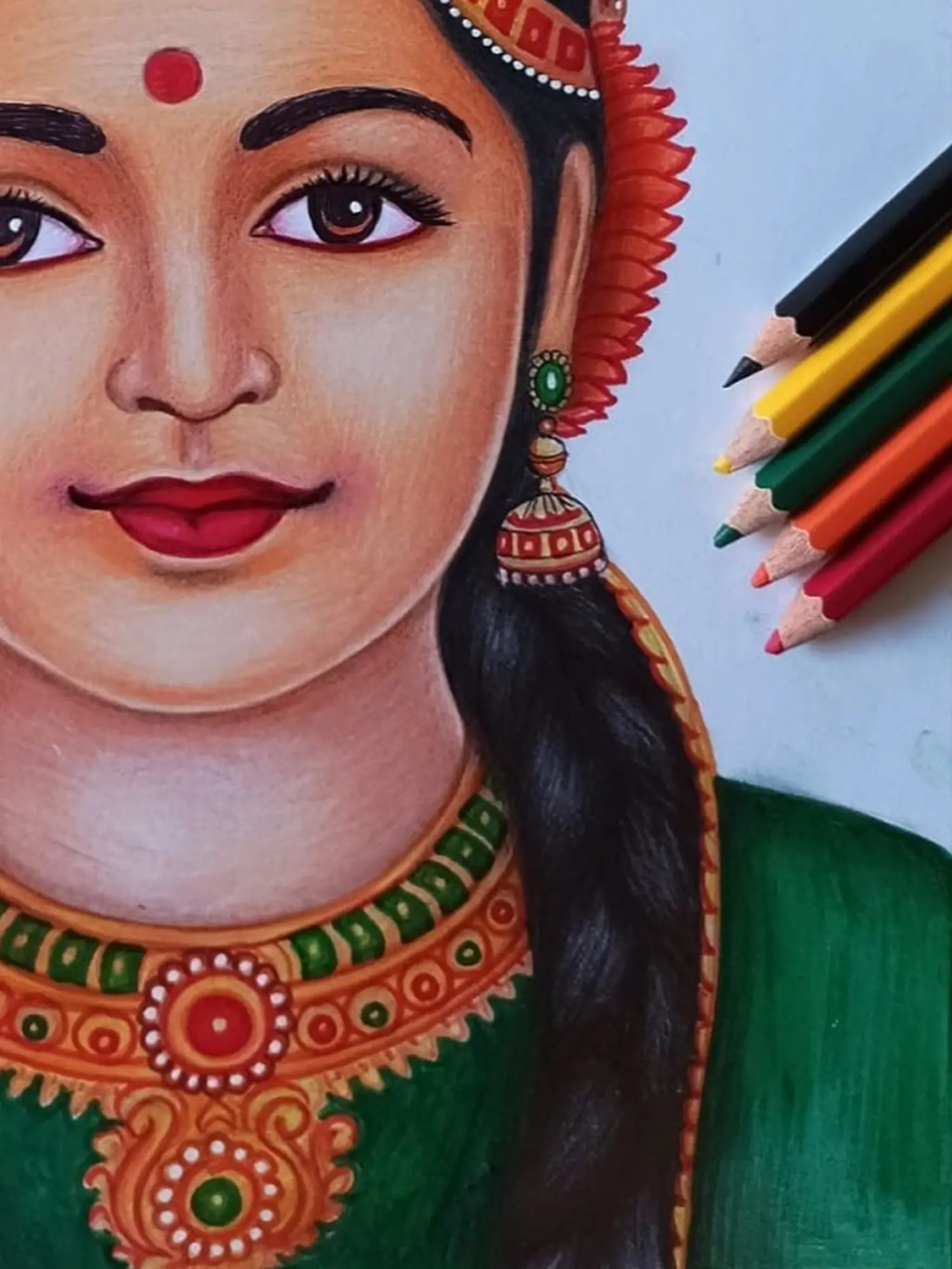 Discover the meticulous craftsmanship that defines this captivating piece, rendered with exceptional skill using the nuanced medium of color pencil. Each stroke is a testament to the artist's dedication, layering vibrant hues and subtle shading to bring a lifelike depth to the subject. You'll appreciate the delicate rendering of skin tones, the intricate details of the ornamentation, and the overall sense of polished perfection achieved through patient, deliberate application.