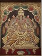 The glittering and radiant Tanjore painting that you see here portrays Lord Ganesha who is the sweet and noble child of Lord Shiva and Mother Parvati. He is revered as the patron of science and arts. Also, known as Vighnaharta Shri Ganesha, he removes all the obstacles from the path of success of the devotees (especially in the path of bhakti) and is thus worshiped at the start of every auspicious ceremony and rite.