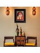 The intricate gold work and ornate frame with colorful stones fitted on it enhance the painting's sacredness, creating a visually captivating masterpiece that inspires devotion and reverence.