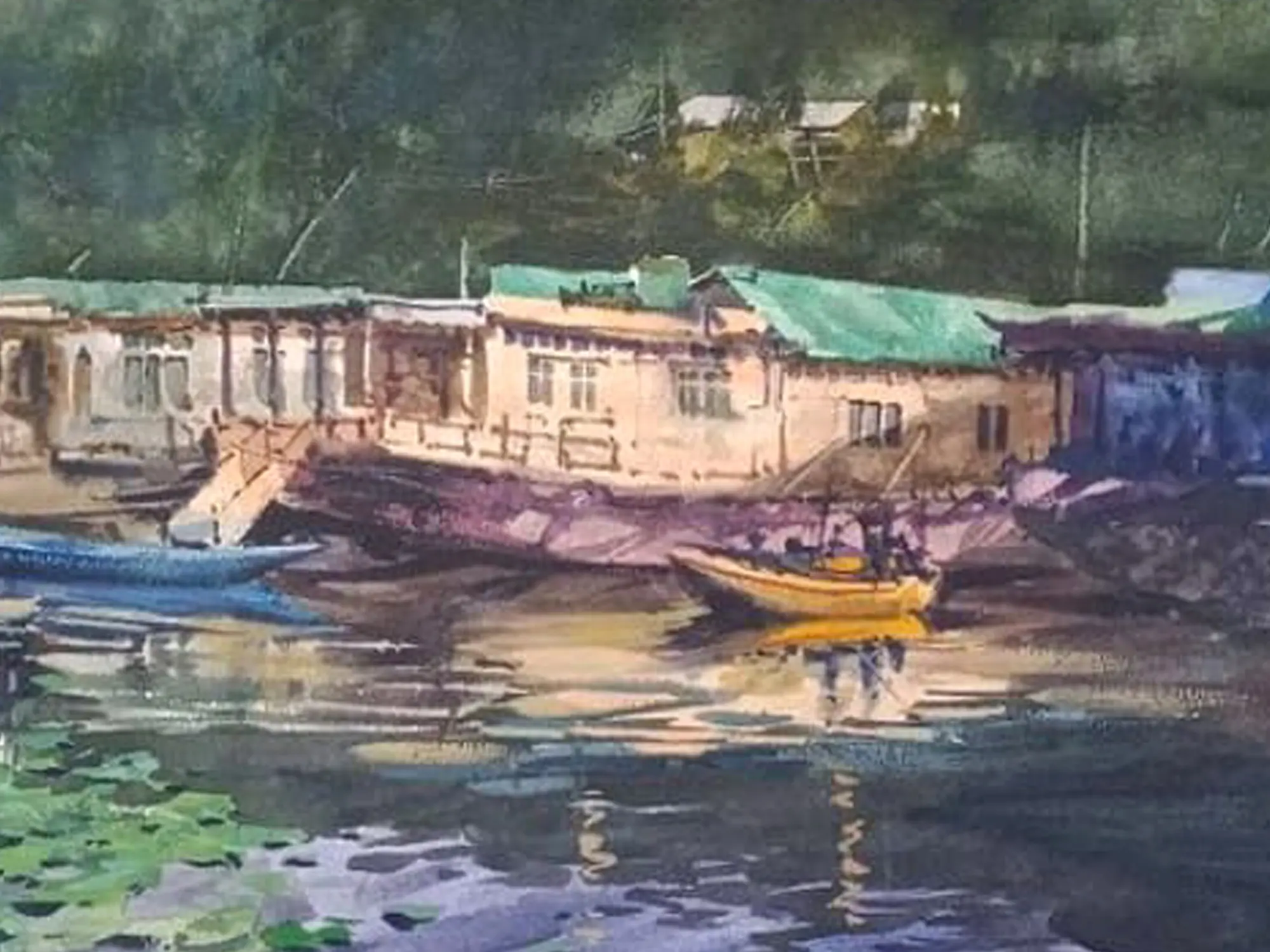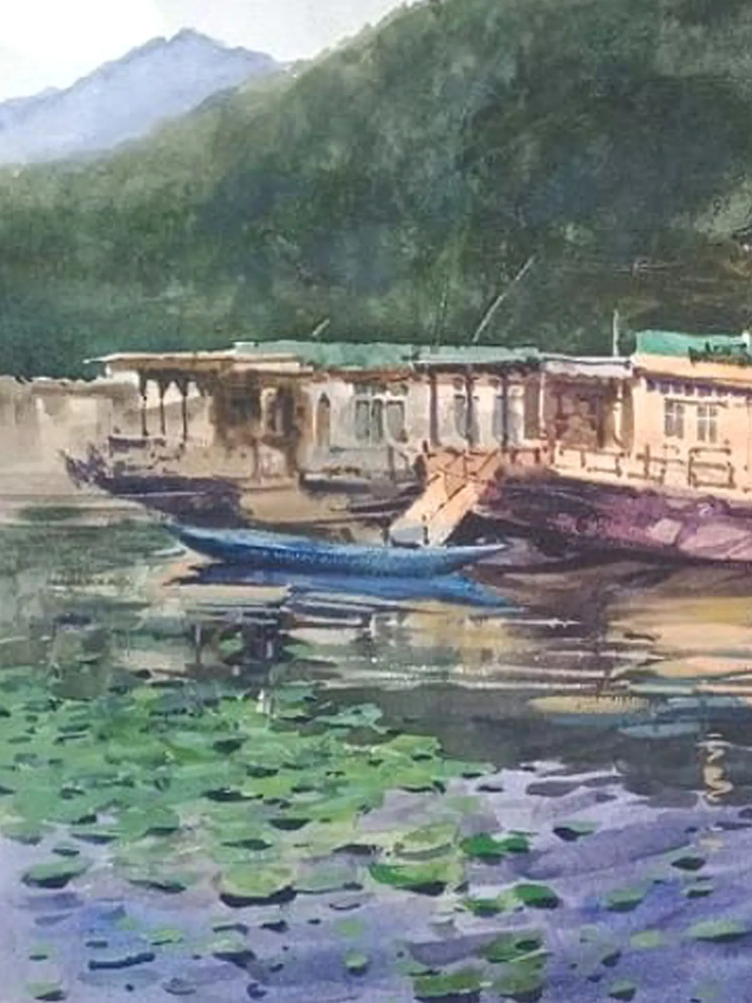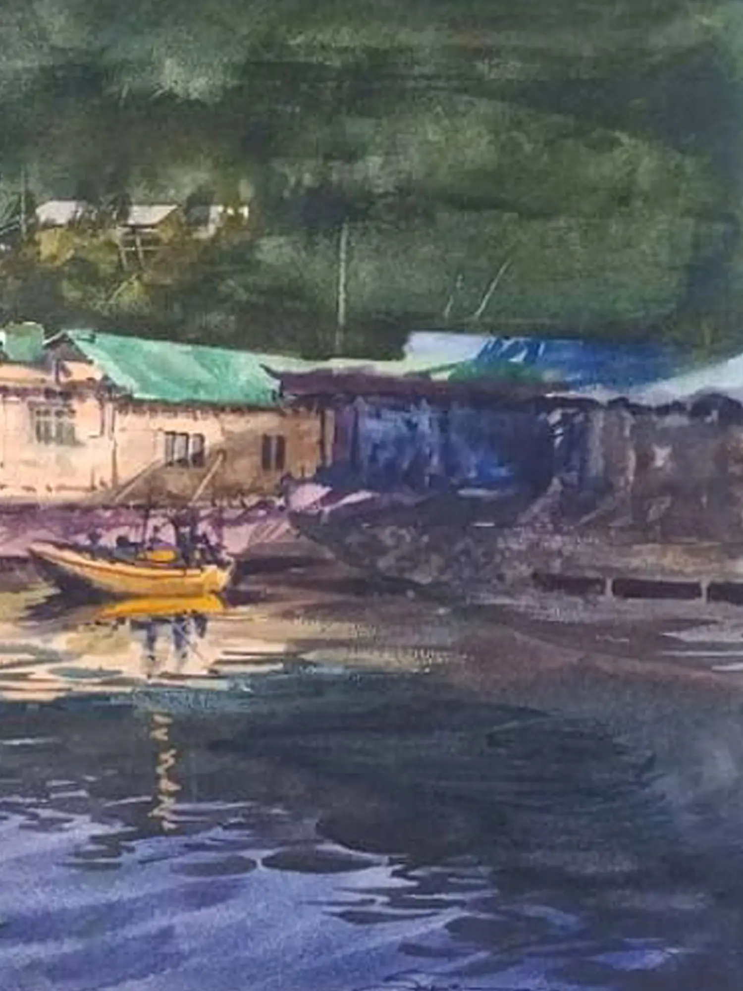 Immerse yourself in a moment of tranquil beauty captured on paper, evoking the timeless allure of waterside living. This evocative watercolor invites you to pause and appreciate a scene that speaks of calm and quiet contemplation.