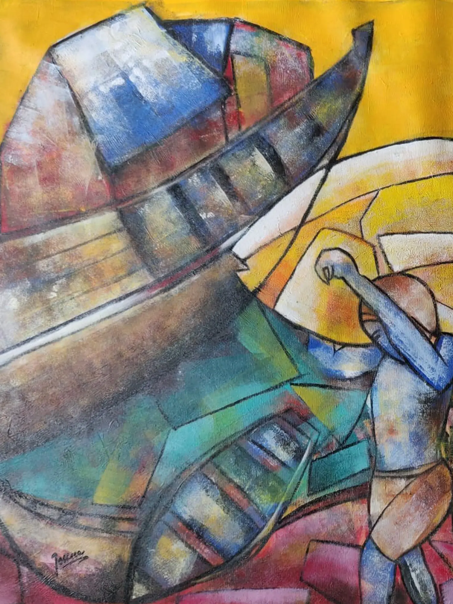 This artwork evokes a universal theme of human perseverance, resonating with stories of fishermen and maritime communities throughout history. While rooted in a contemporary artistic style, it taps into the primal human experience of sustenance and community, offering a narrative that transcends specific cultures and speaks to the shared human journey. It's a piece that encourages reflection on the origins of our food and the dedication of those who provide it.