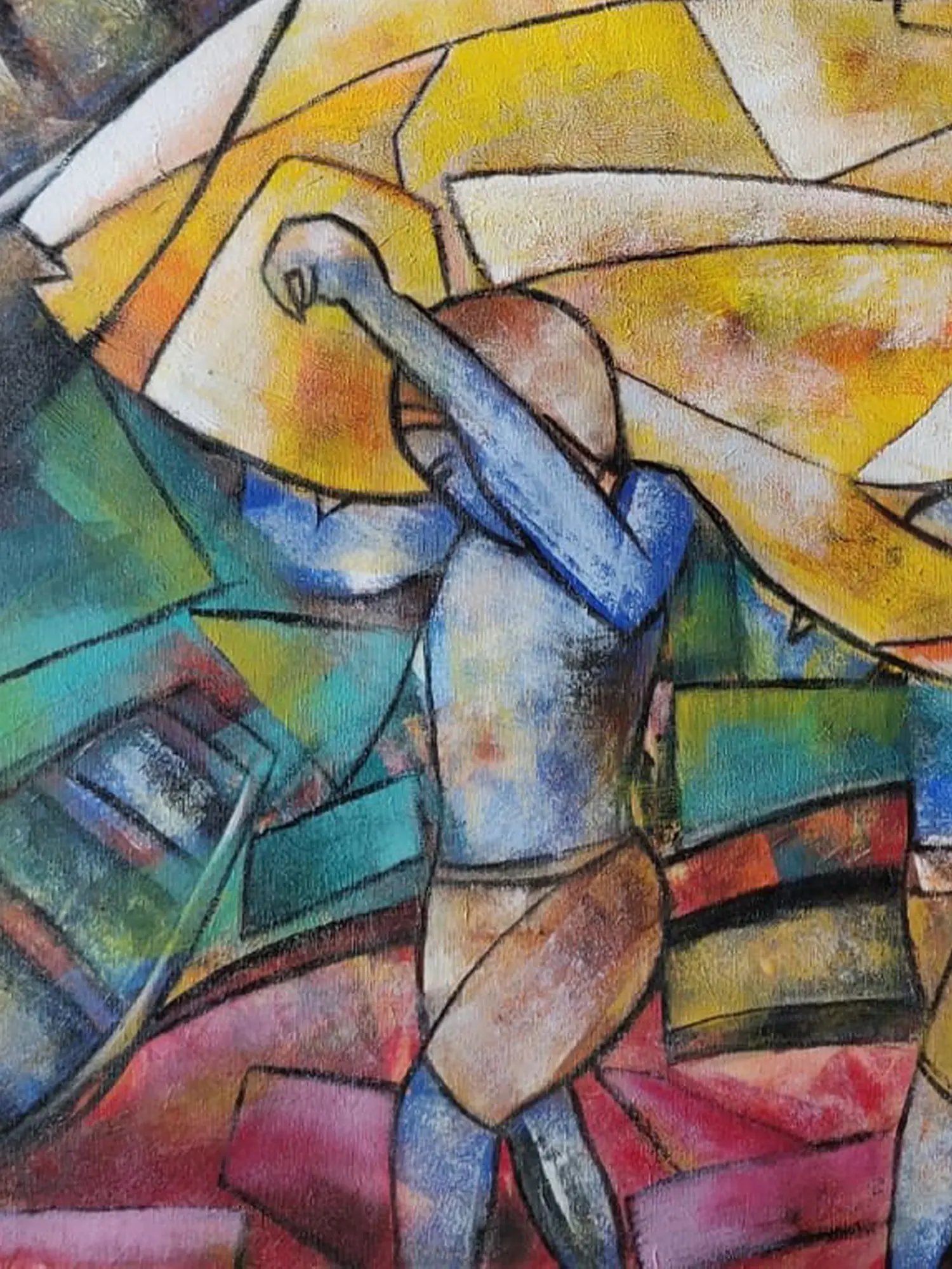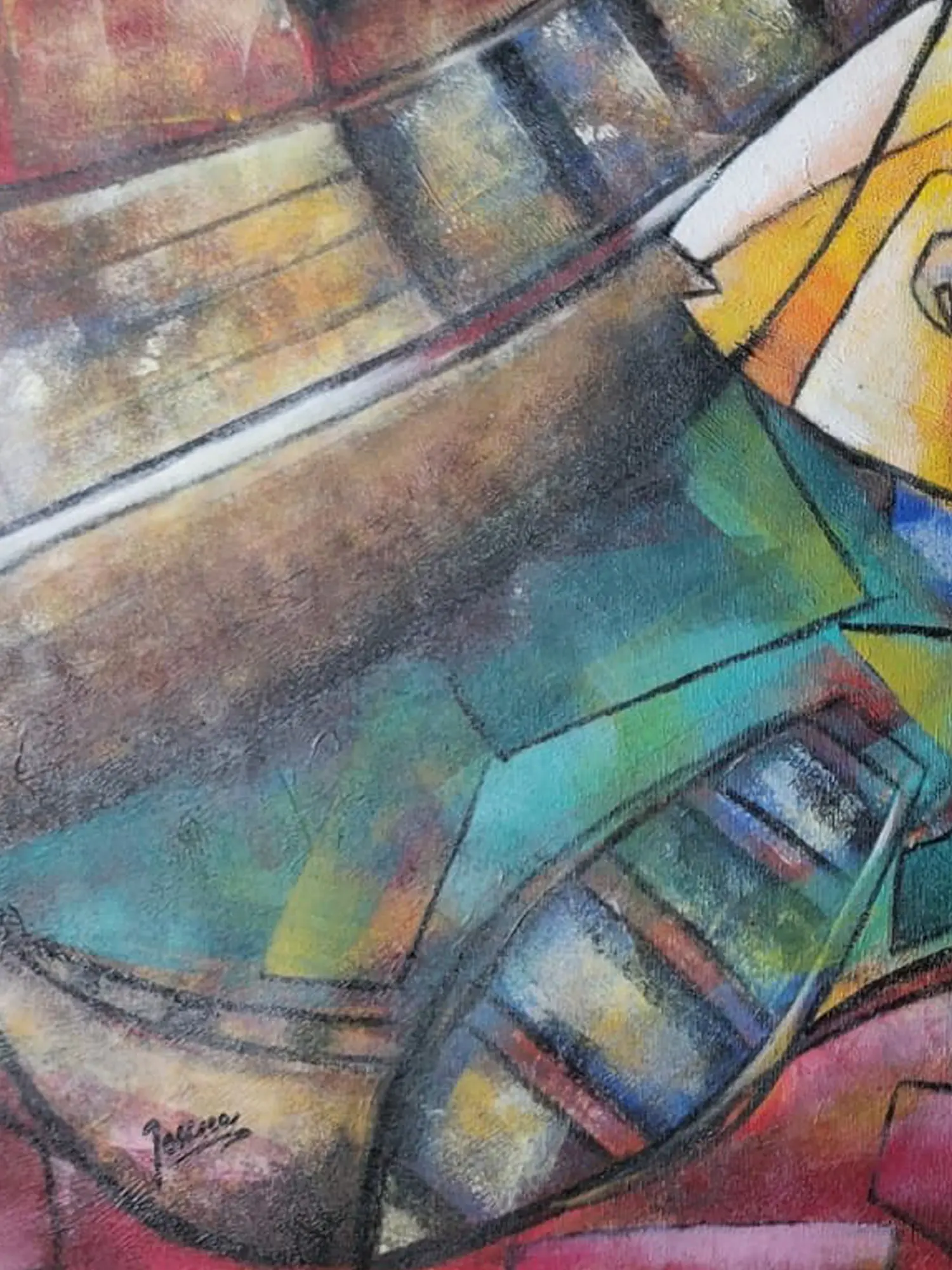 Crafted with the finest acrylics on canvas, this piece showcases the artist's masterful command of color and form. Each stroke is deliberate, building layers of texture and depth that invite closer inspection. The bold lines and expressive application of paint speak to a modern aesthetic, yet echo the timeless techniques of artisanal creation, promising a tangible sense of quality and enduring artistry.