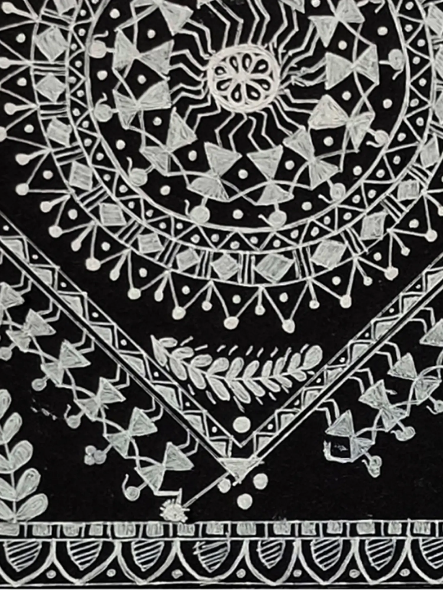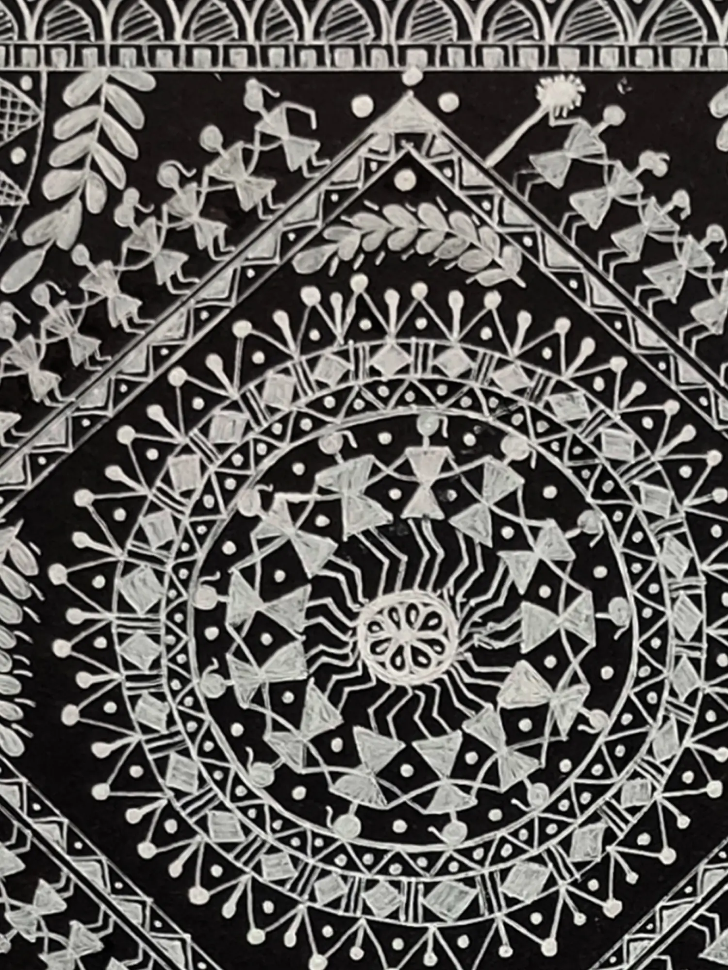 Warli art originates from the tribal communities of Maharashtra, India, and has been practiced for centuries. Traditionally, these paintings adorned the walls of huts, depicting scenes of daily life, nature, and spiritual rituals. This contemporary interpretation pays homage to that rich heritage, bringing the soulful essence of tribal India into the modern home.