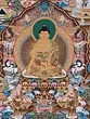 Superfine Medicine Buddha On The Six-Ornament Throne of Enlightenment in His Universe - Tibetan Buddhist Brocadeless Thangka