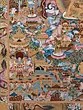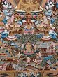 The painting is organized hierarchically, with the central Buddha figure representing enlightenment and the ultimate goal of spiritual practice. Surrounding the Buddha are scenes from his life, depictions of various deities, and symbolic representations of core Buddhist concepts like the Four Noble Truths and the Eightfold Path. These visual narratives provide a rich tapestry for contemplation and learning. Look closely, and you'll discover the six realms of existence, a concept fundamental to Buddhist cosmology. These realms, ranging from the realm of gods to the realm of hell beings, represent the different states of consciousness and the cyclical nature of Samsara, the cycle of birth, death, and rebirth. The meticulous detail in each realm offers insights into the karma that binds beings to these different states and the potential for liberation through the Buddha's teachings.