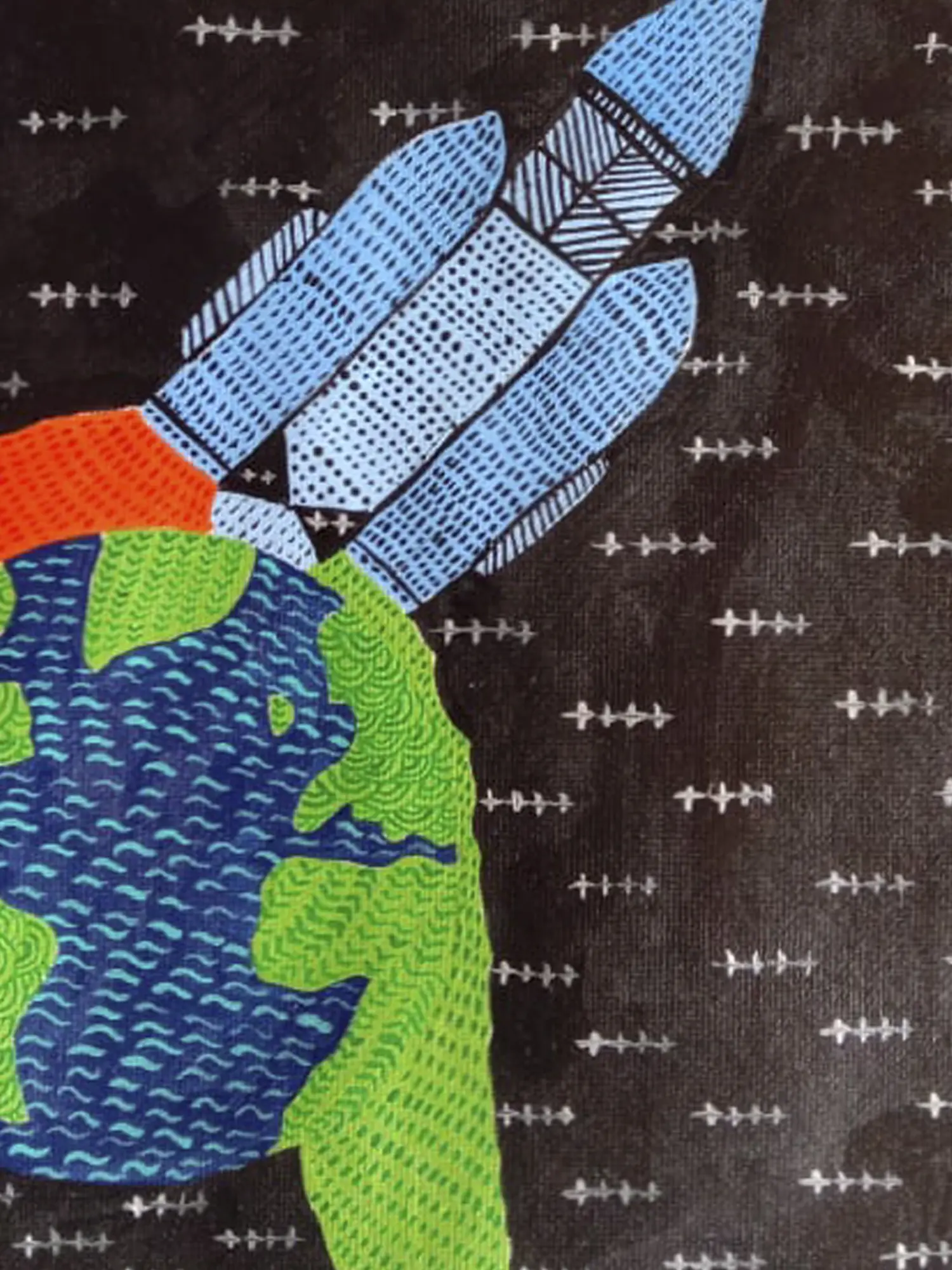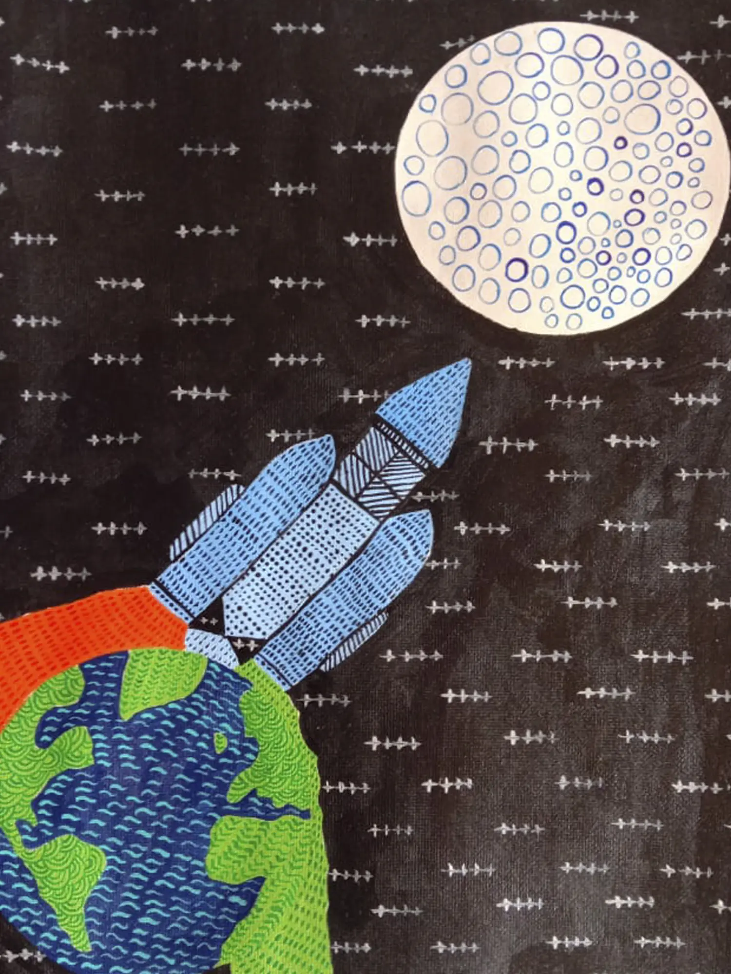 Krishna Joshi's "Chandrayaan - Stairs of Success" painting embodies the spirit of India's space exploration endeavors. Depicting the Chandrayaan mission, rendered in watercolor on canvas sheet, Joshi captures the awe-inspiring journey to the moon with vibrant colors and dynamic composition. The depiction symbolizes the progressive steps taken in scientific advancement and space exploration. Against a backdrop of celestial hues, the Chandrayaan spacecraft emerges as a beacon of human achievement and innovation. Through this artwork, Joshi not only celebrates India's scientific prowess but also inspires viewers to reach for the stars and pursue their dreams with determination and perseverance.
