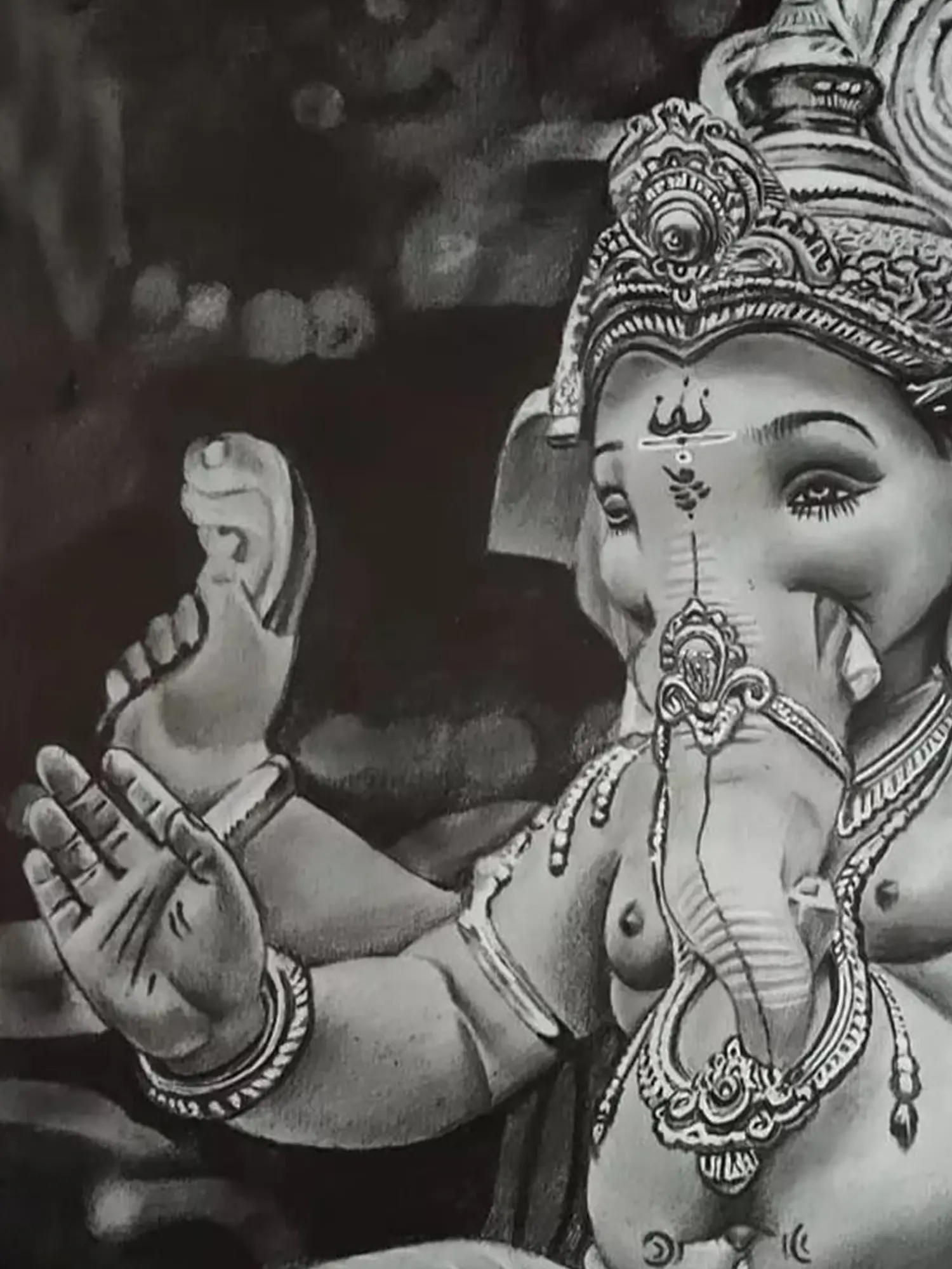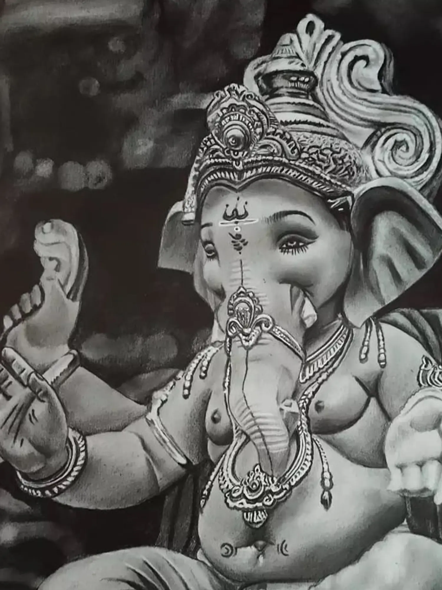 Lord Ganesha | Charcoal Painting | Gunjan Daga