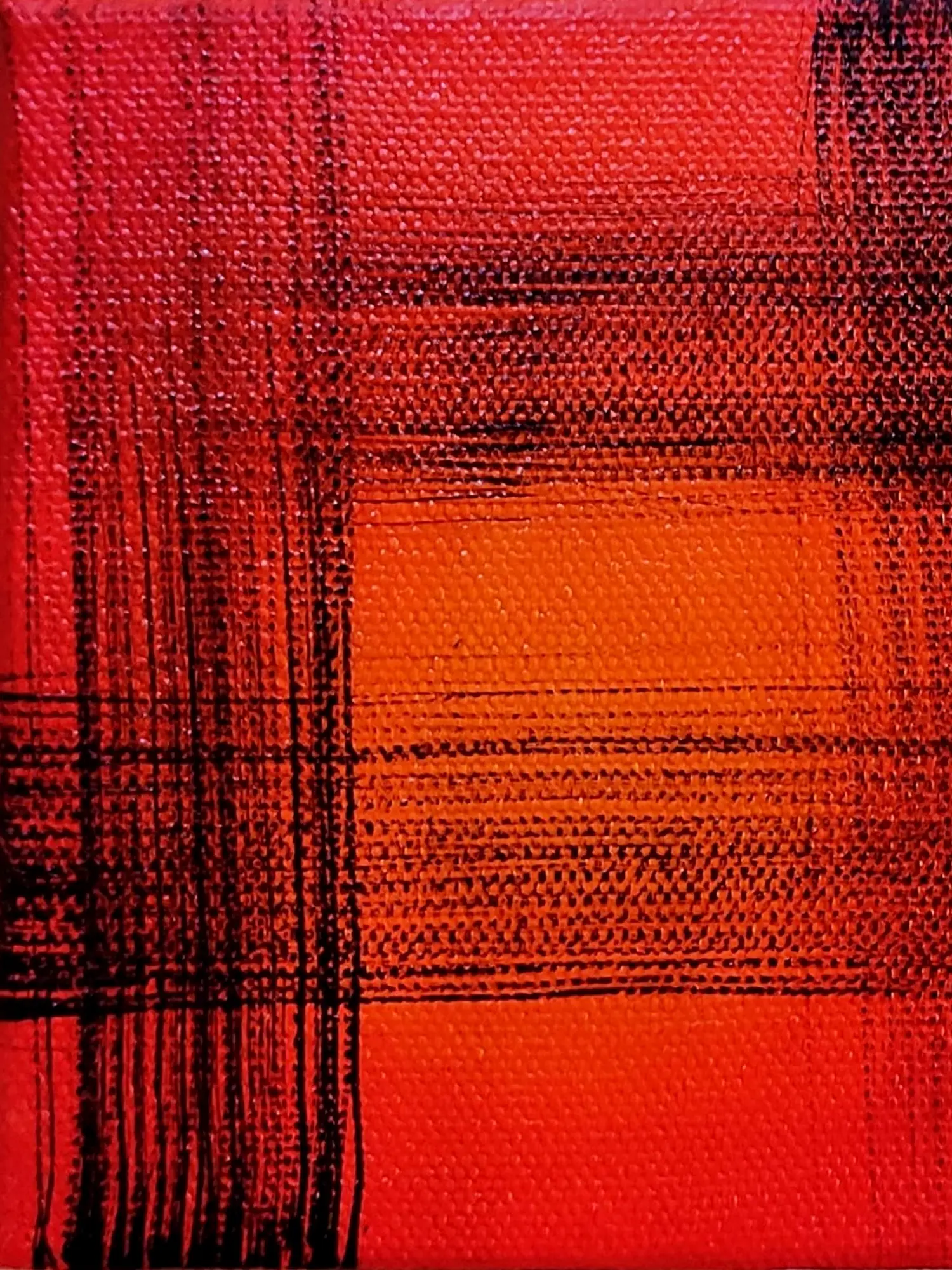 This captivating piece, "Checked Texture Abstract Art," by Shraddha Shirsat, is a vibrant exploration of form and texture. The bold use of crimson and black creates a dynamic interplay of energy and stillness, inviting the viewer into a world of rich visual sensations. The artist masterfully employs contrasting brushstrokes, layering the fiery red with streaks of deep black, resulting in a composition that is both energetic and contemplative. The texture of the acrylic paint on the stretched canvas adds another dimension, allowing the colours to resonate with a palpable presence. The small size of the painting (4x4 inches) doesn’t diminish its impact; instead, it enhances the intimacy and allows for a focused engagement with its intense hues and evocative strokes.