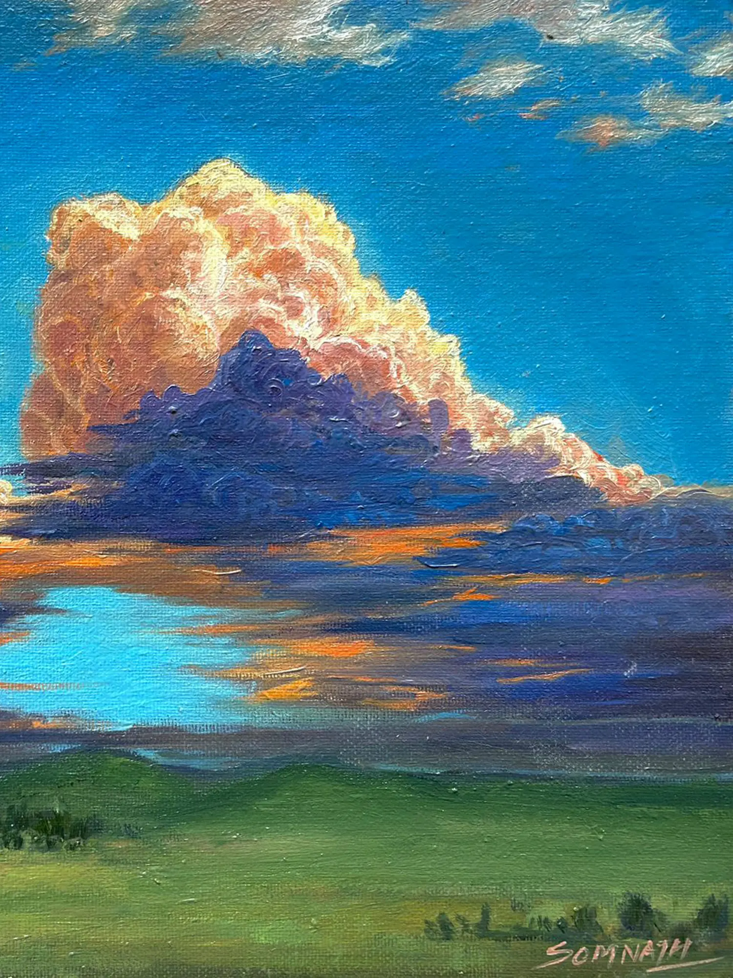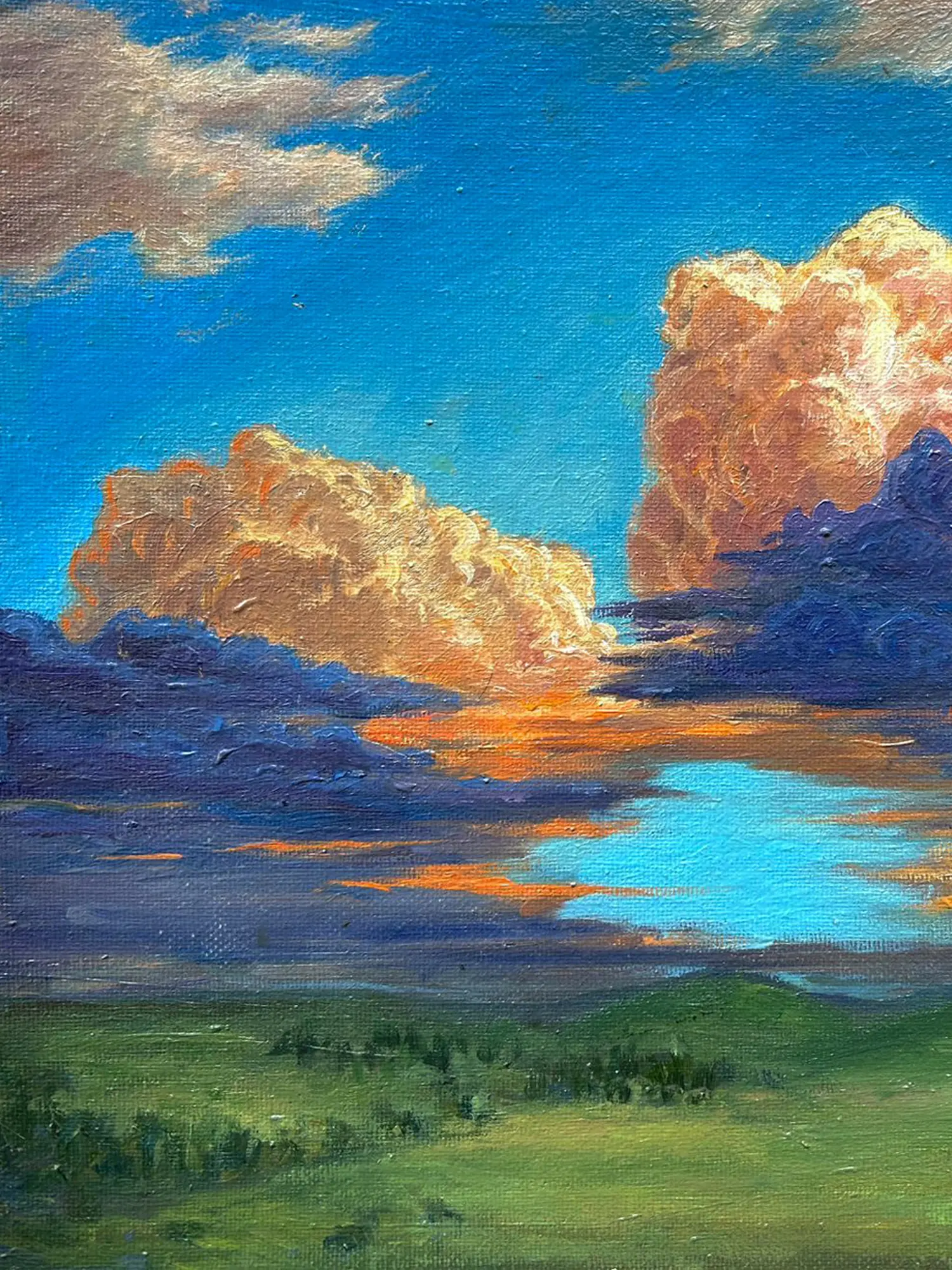 Lose yourself in the sublime beauty of "Cloudscape," an enchanting portrayal in oil on canvas. Evoking a sense of boundless freedom, this artwork captures the ever-changing hues and textures of the sky. With masterful brushwork and subtle nuances, the artist invites viewers to embark on a journey of introspection and wonder, where clouds become metaphors for the fleeting nature of existence and the eternal dance of creation.