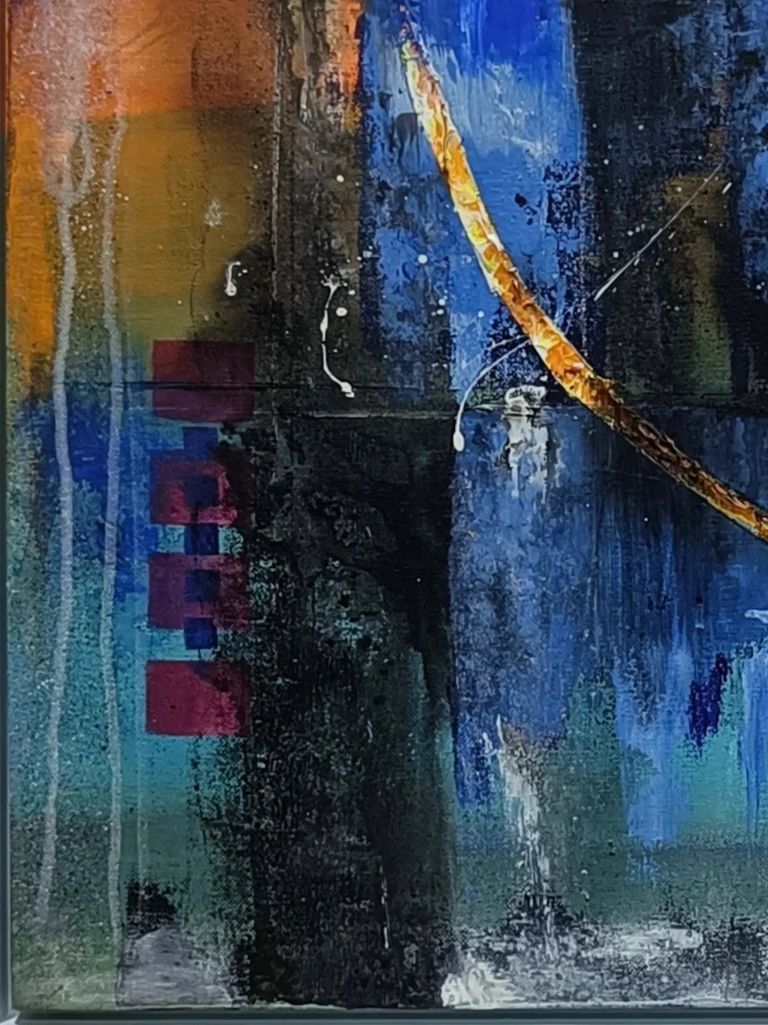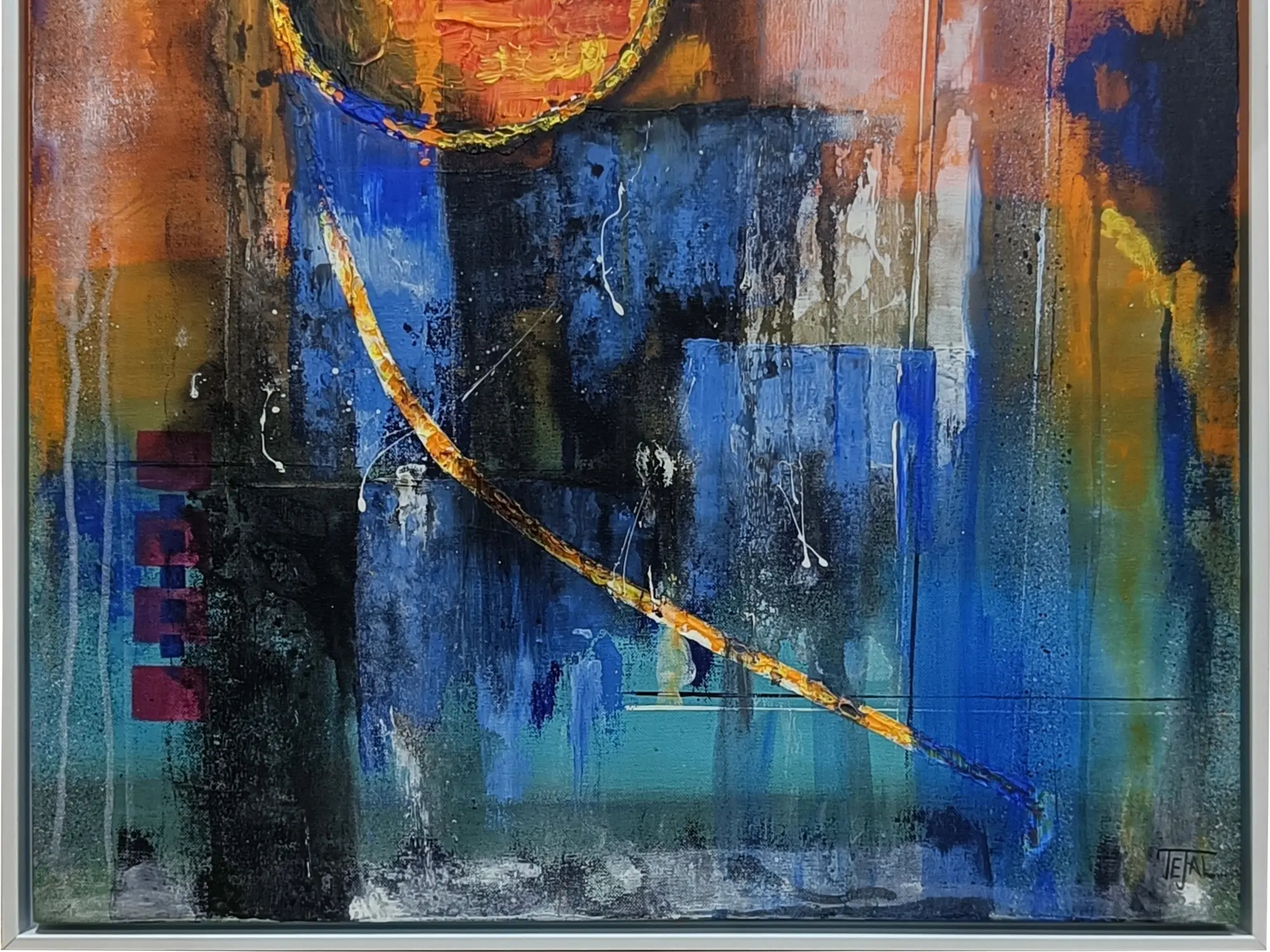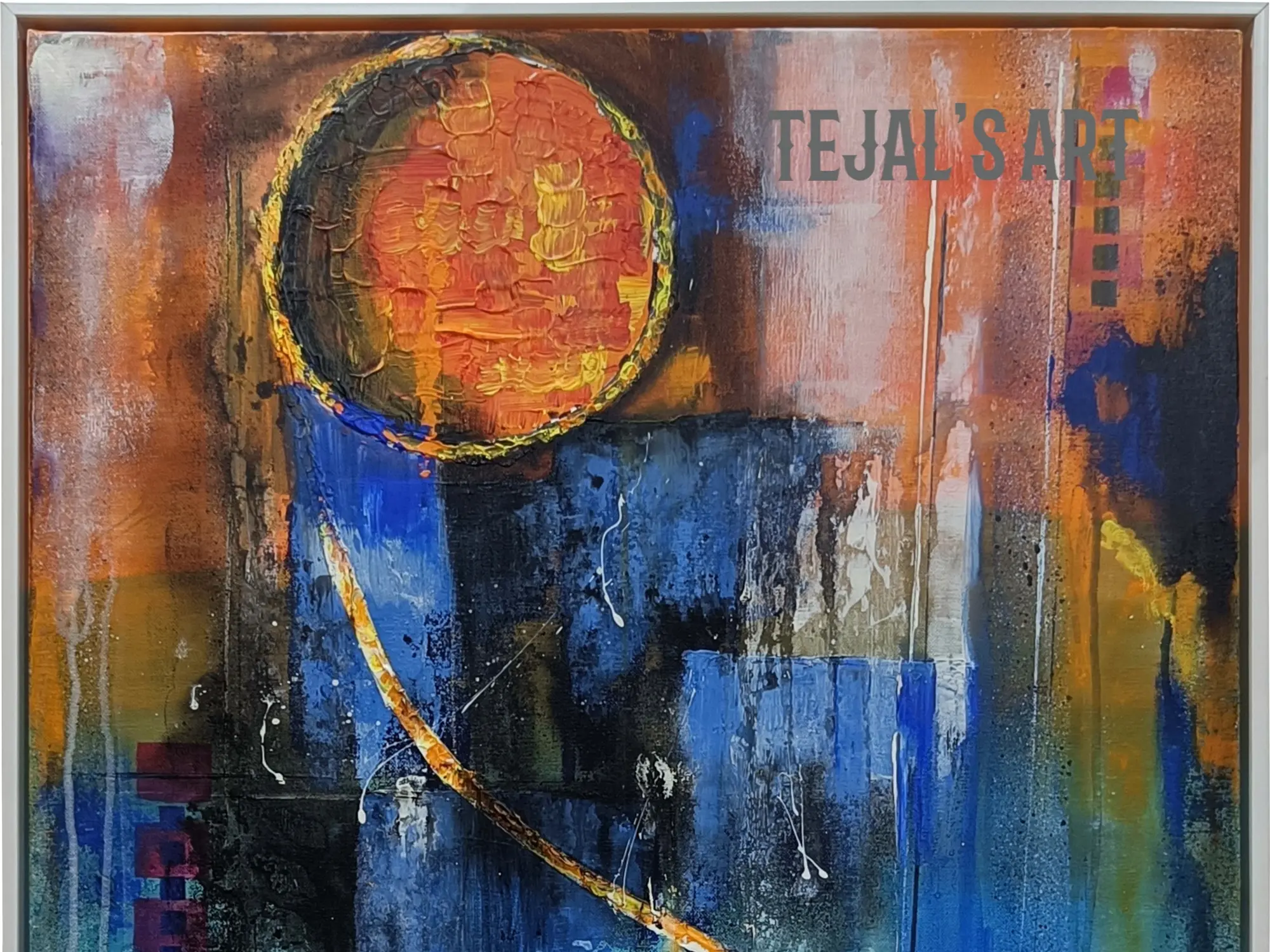 This acrylic abstract painting bursts forth with a riot of colours and dynamic forms, evoking a sense of boundless energy and creative expression. Each brushstroke dances across the canvas, weaving a tapestry of vibrant hues and intricate patterns that captivate the imagination. From its bold contrasts to its fluid compositions, the artwork celebrates the infinite possibilities of artistic vision and emotional resonance.