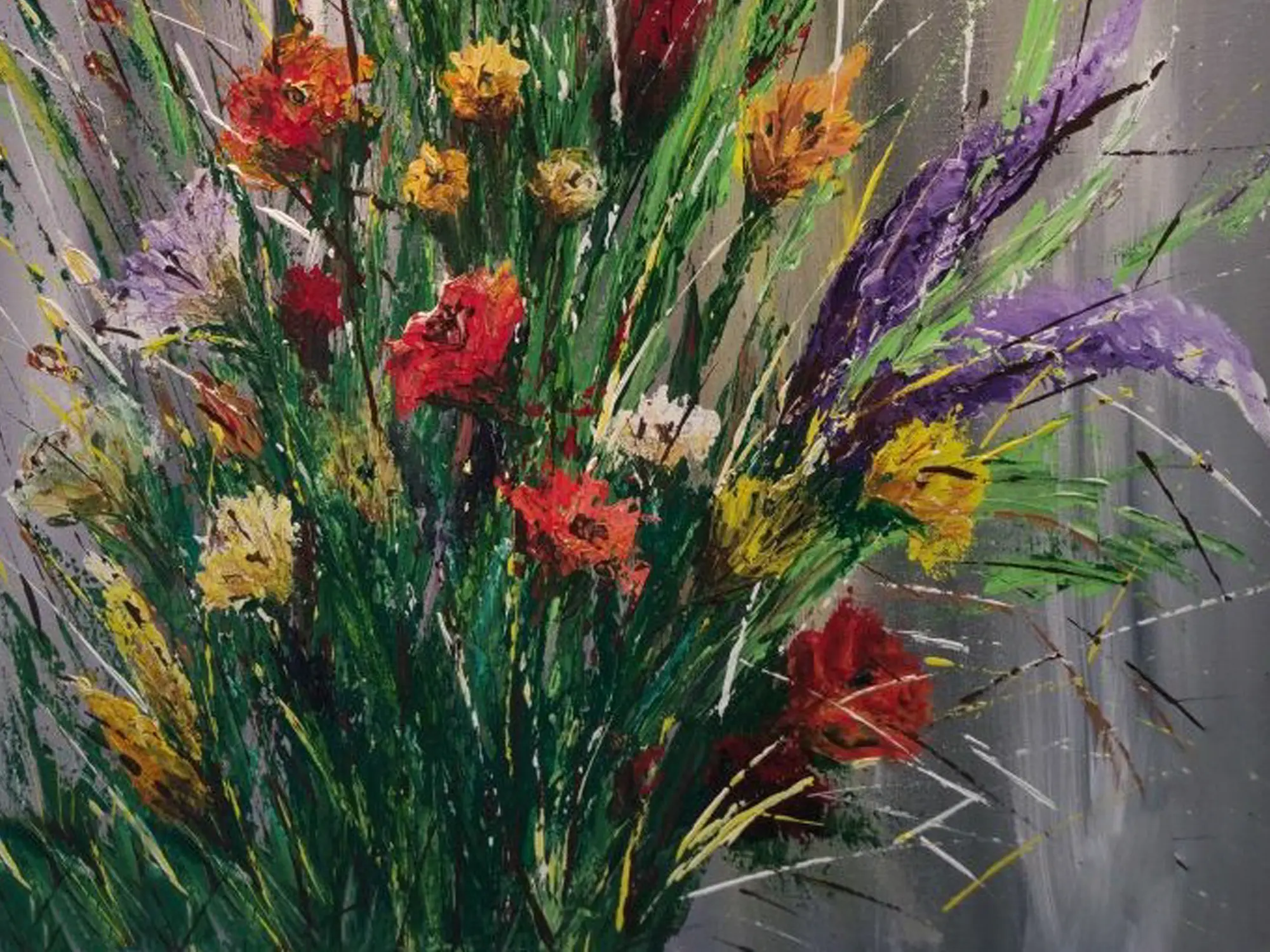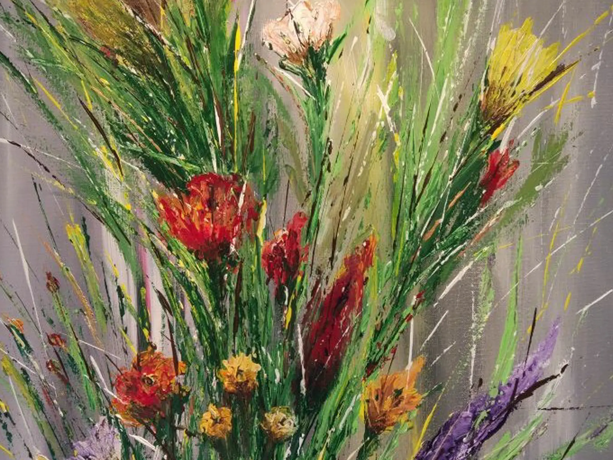 Invigorate your living space with a burst of untamed floral energy. This captivating artwork brings the exuberance of a meadow in full bloom directly into your home, promising to be a cherished focal point.