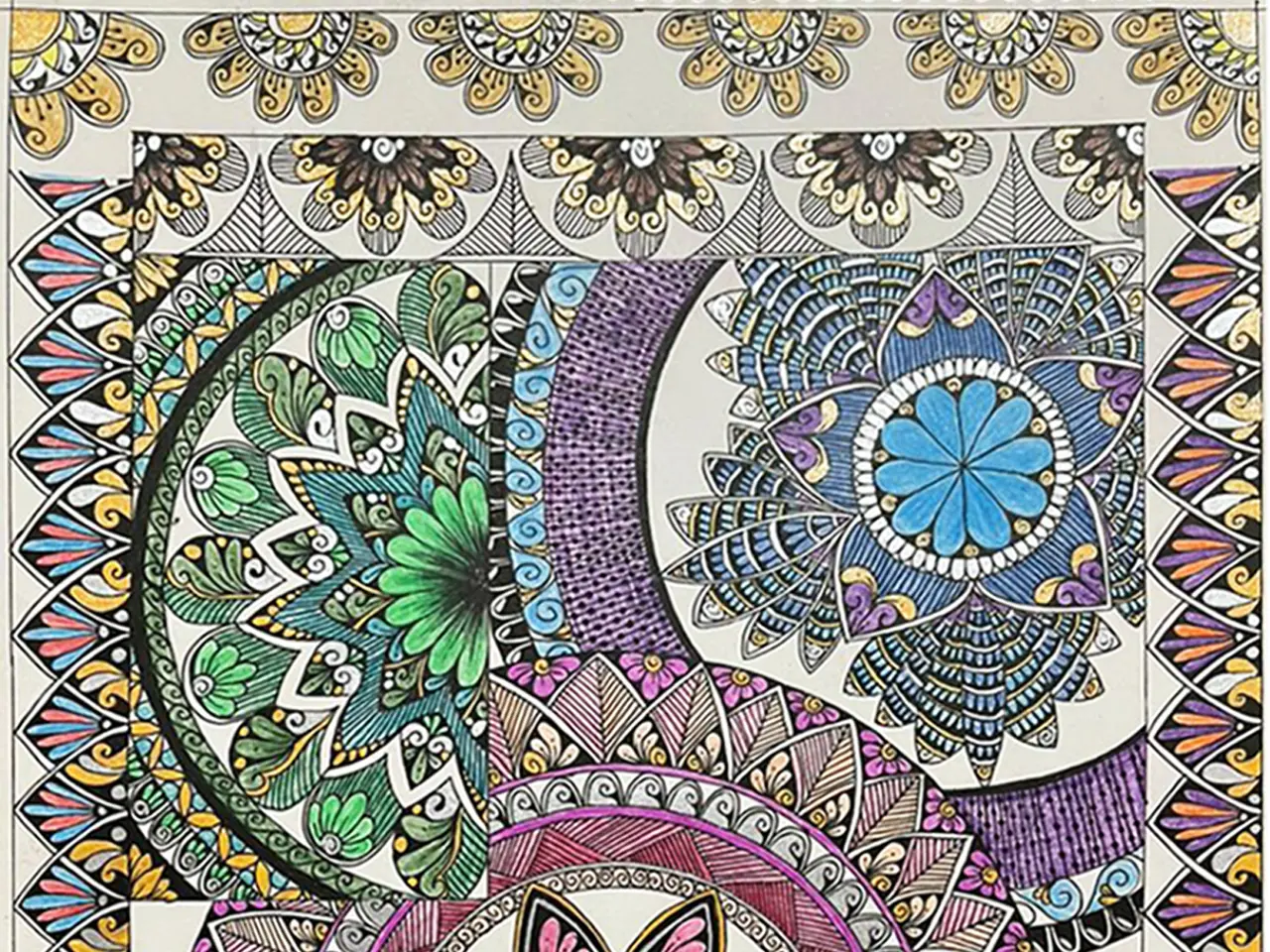 Mandalas, with their intricate geometric patterns, hold profound spiritual significance, representing unity, balance, and cosmic order. Parisha Thukral's "Colorful Floral Pattern of Mandala" in Watercolor on Paper beautifully encapsulates this symbolism. The vibrant hues and delicate floral motifs within the mandala evoke a sense of interconnectedness and spiritual harmony.