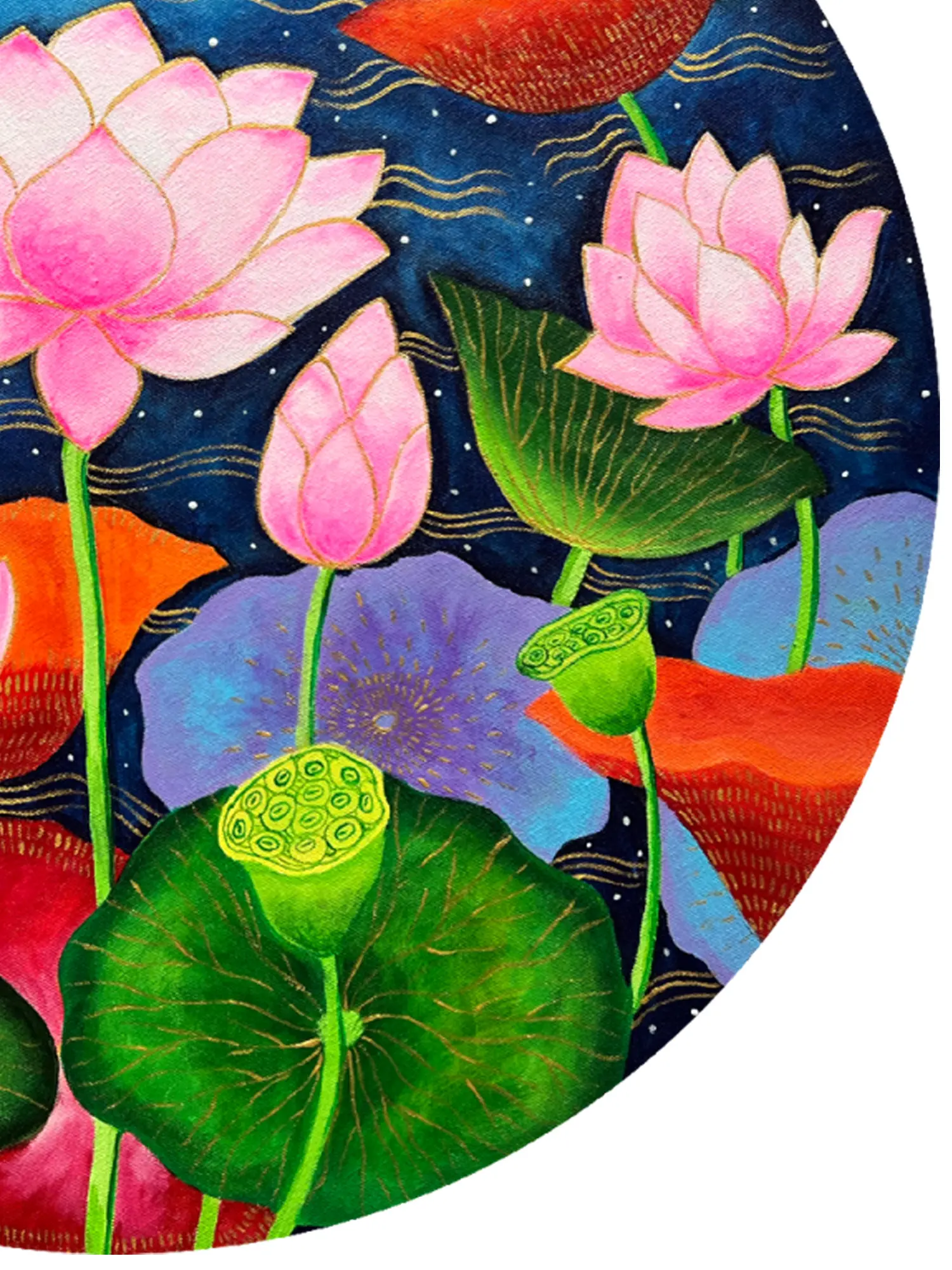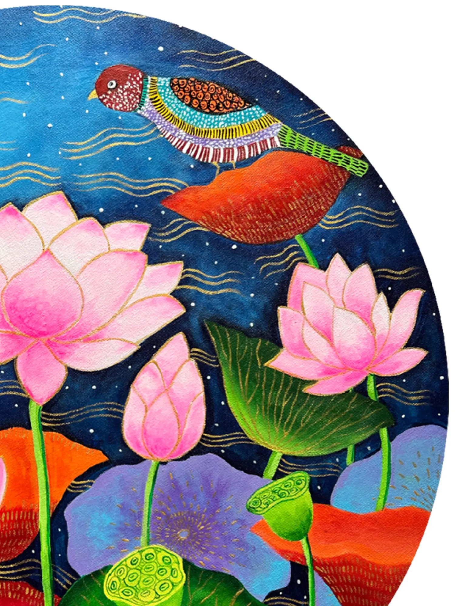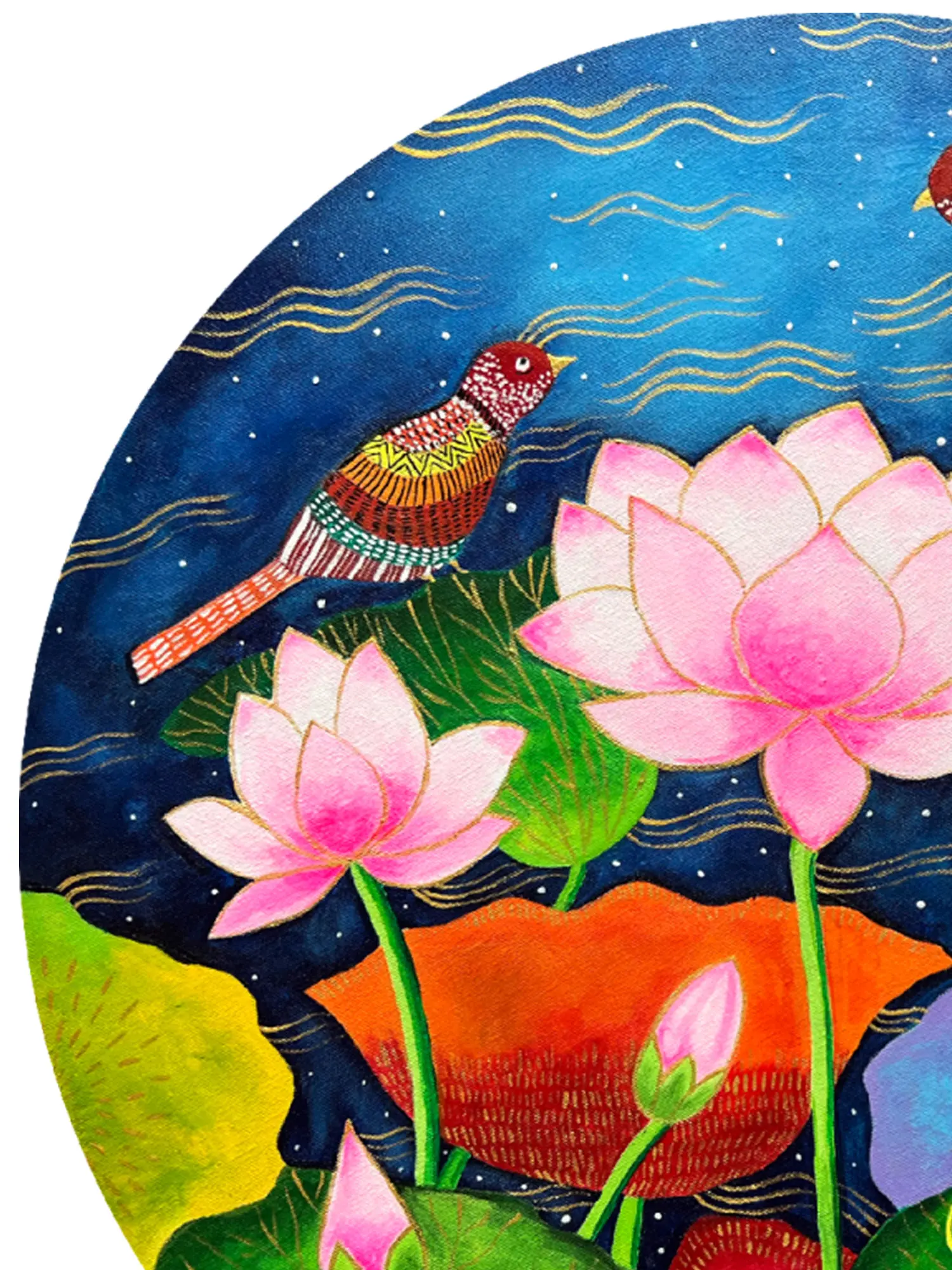 Krishna Applying Flowers To Radha | Acrylic On Canvas | By Kishore Kawad