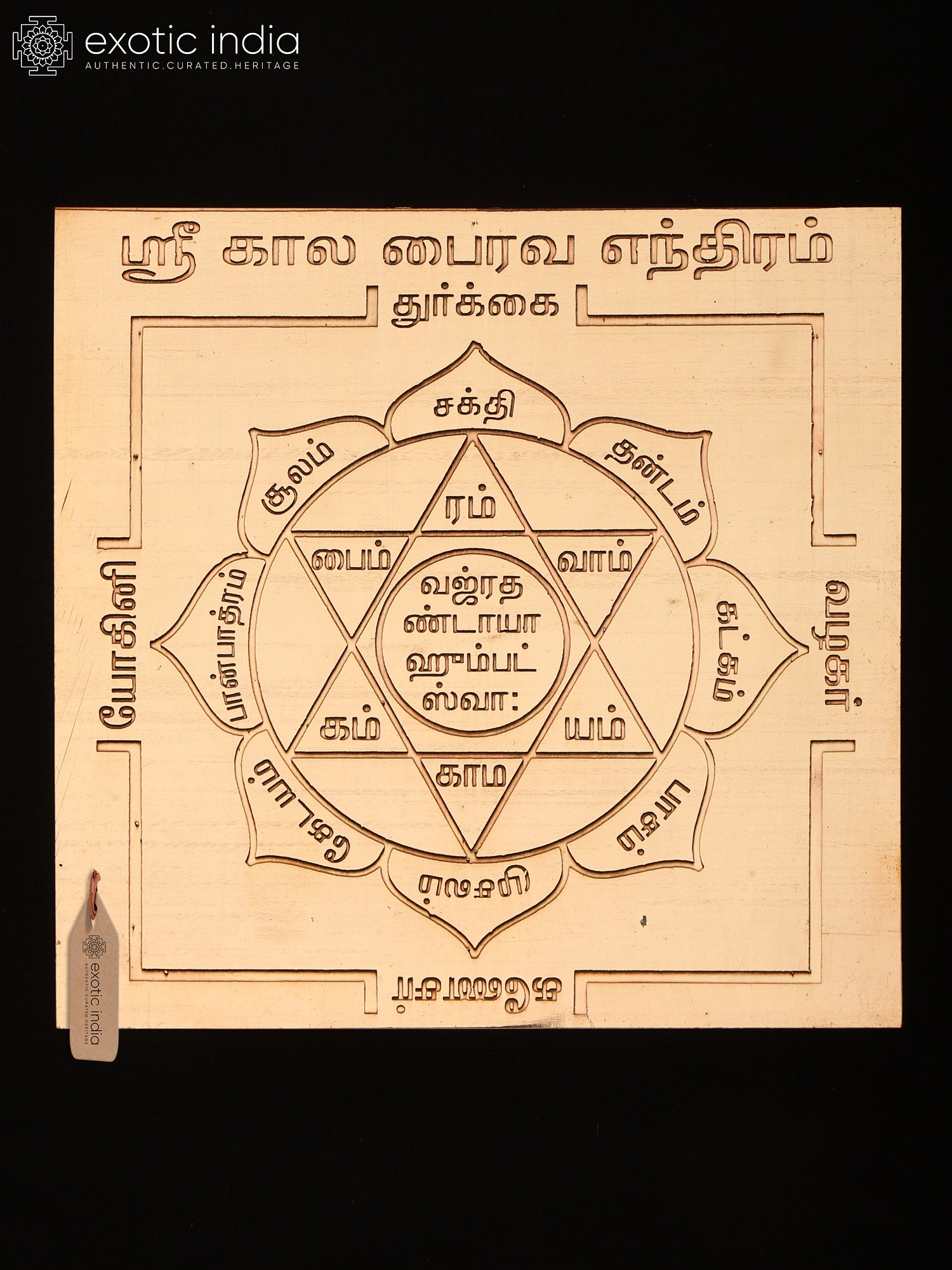 This Yantra invokes the blessings and protection of “Lord Kala Bhairava”, a fierce manifestation of Lord Shiva. This yantra is a symbol of time and comprises intricate patterns and is believed to channel divine energy. Painstakingly inscribed on a copper plate, this mystical tool offers protection from negative forces. It enhances One’s decision-making abilities, and promotes discipline and punctuality. Devotees use this sacred Yantra in rituals to seek Lord Kala Bhairava’s guidance in managing time effectively, overcoming obstacles, and attaining spiritual growth.