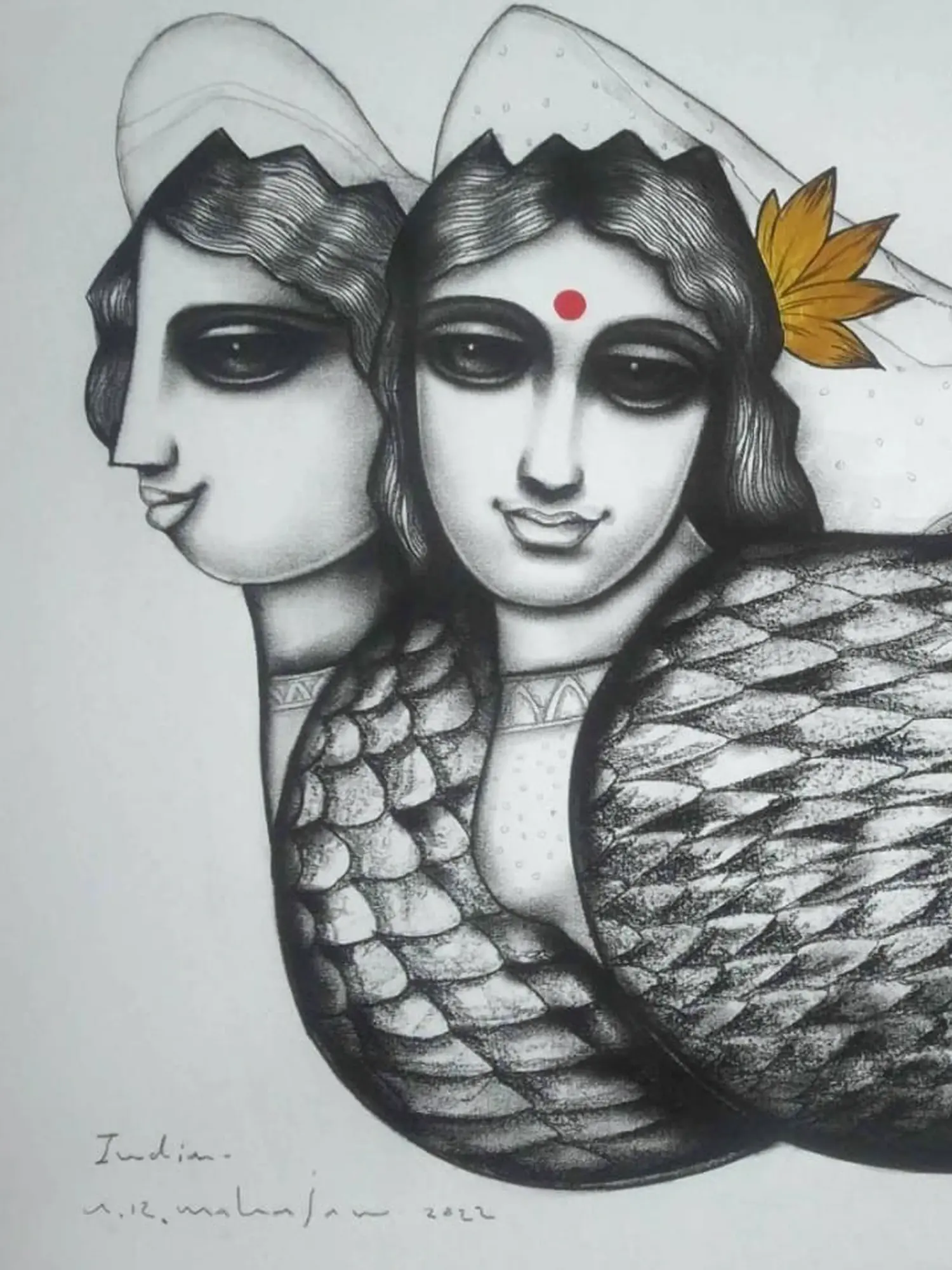In this piece, the artist delicately captures a tender moment between avian companions using charcoal on paper. This artwork goes beyond a mere depiction of birds; it is a nuanced exploration of intimacy and connection within the natural world. The artist's mastery of the charcoal medium adds depth and emotion to the portrayal, making each stroke on the paper a testament to the love shared by this charming avian couple.