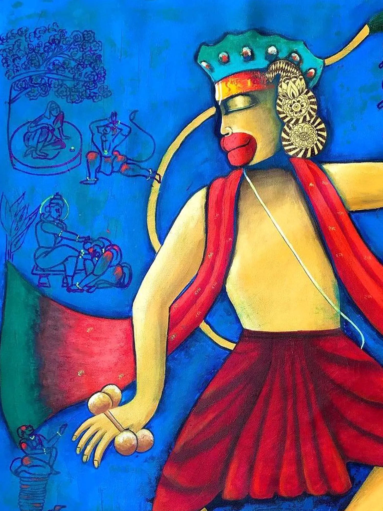 Devotion Of Hanuman | Acrylic On Canvas | By Arjun Das