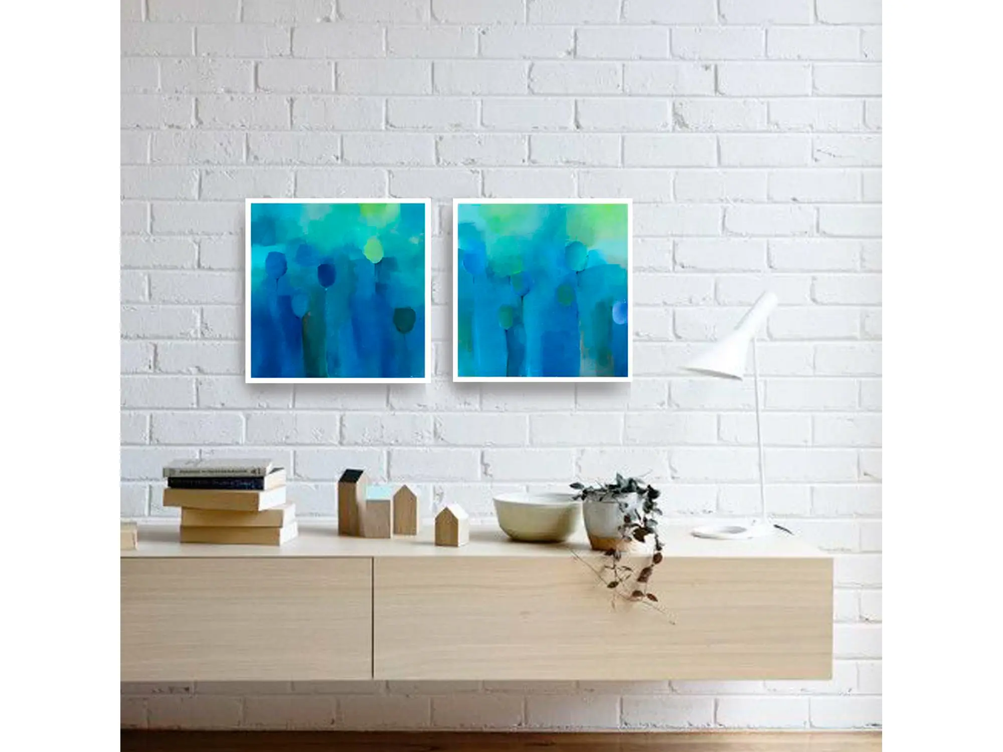 Immerse yourself in a tranquil expanse of oceanic blues and verdant greens, a captivating diptych designed to bring a sense of serene beauty into your living spaces. You'll appreciate how these companion pieces evoke the peaceful depths of nature, offering a visual sanctuary from the everyday. Their abstract composition invites contemplation, allowing you to find your own meaning within the interplay of light and shadow.