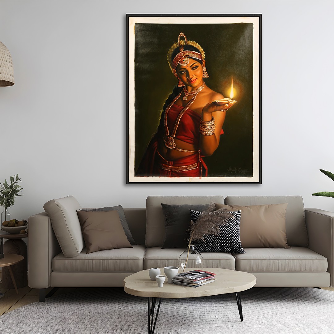 Devadasi with Lamp Oil Painting on Canvas | Without Frame