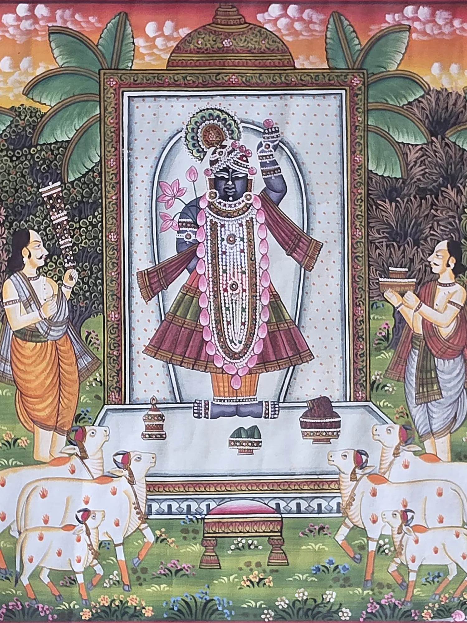 Worship Of Lord Shrinathji | Natural Color On Cloth | By Dheeraj Munot