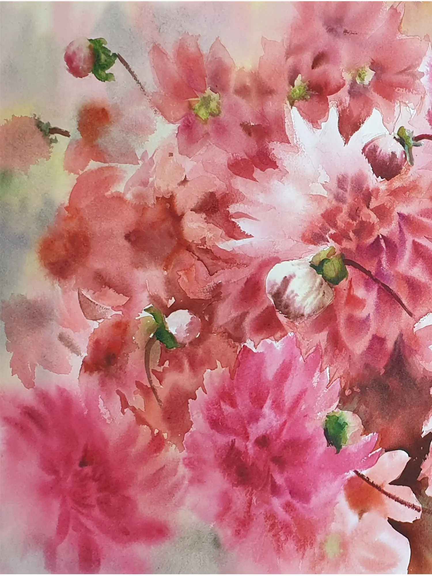 Made in sheer gorgeous colour, the Dahlia Flower emerges as a symbol of elegance and resilience. Painted delicately on paper, each petal unfurls with grace, embodying the philosophy of inner strength and beauty. The watercolour technique lends a sense of fluidity and movement to the artwork, inviting viewers to revel in the fleeting splendour of nature. Through subtle nuances of light and shadow, the artist captures the essence of the dahlia, immortalising its timeless allure on the canvas of imagination.