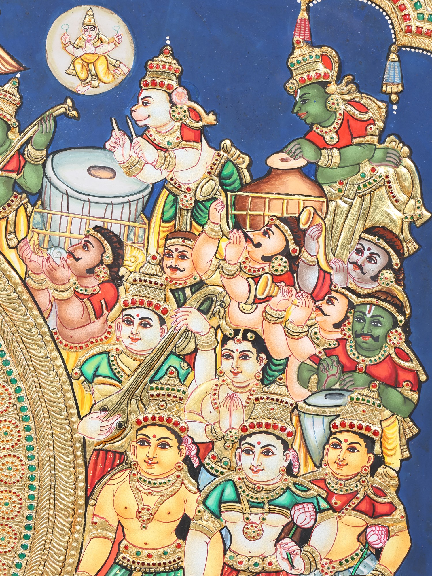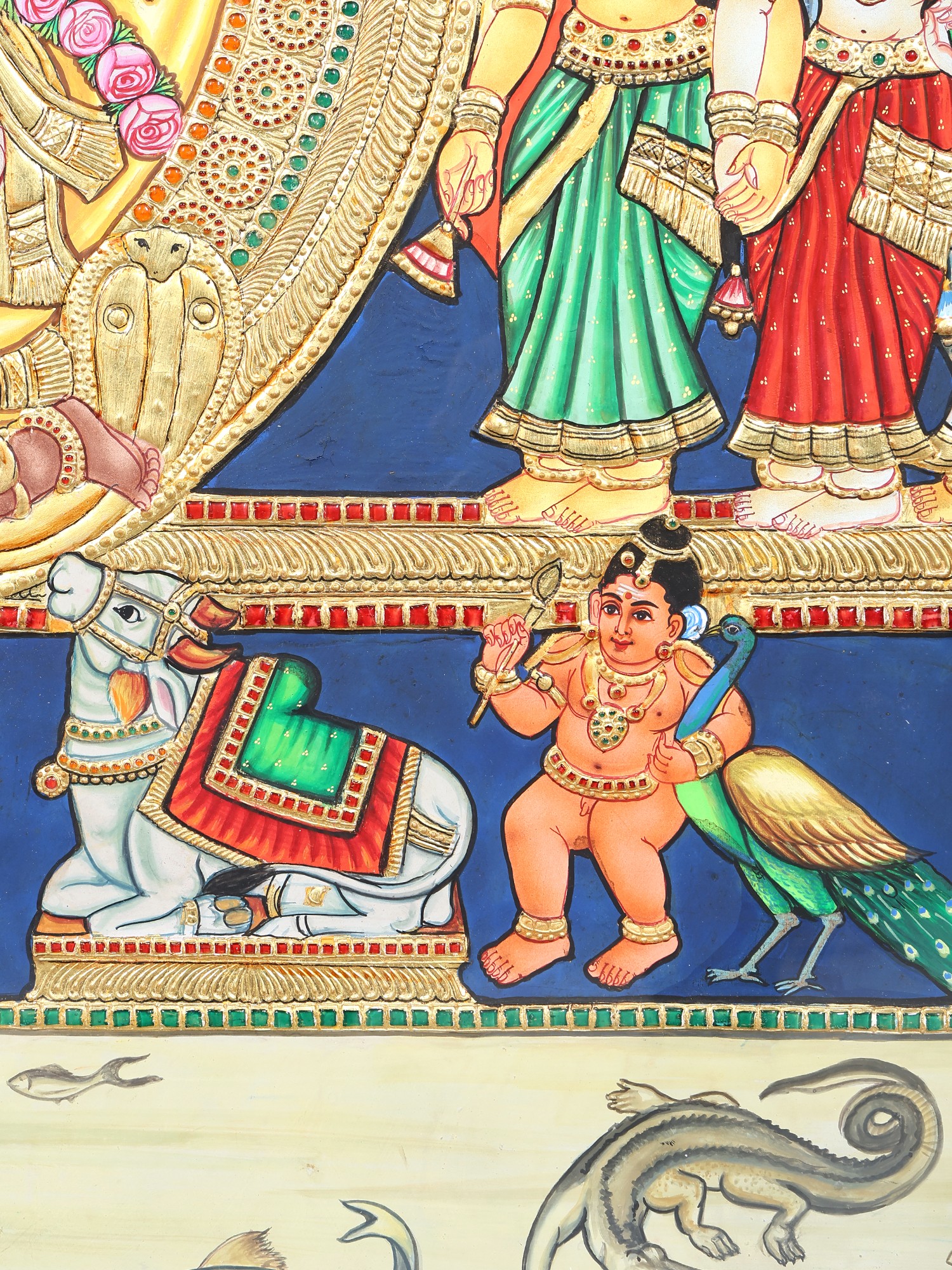 Meenakshi Kalyanam Tanjore Painting with Teakwood Frame | Traditional Colors With 24K Gold | Handmade Artwork