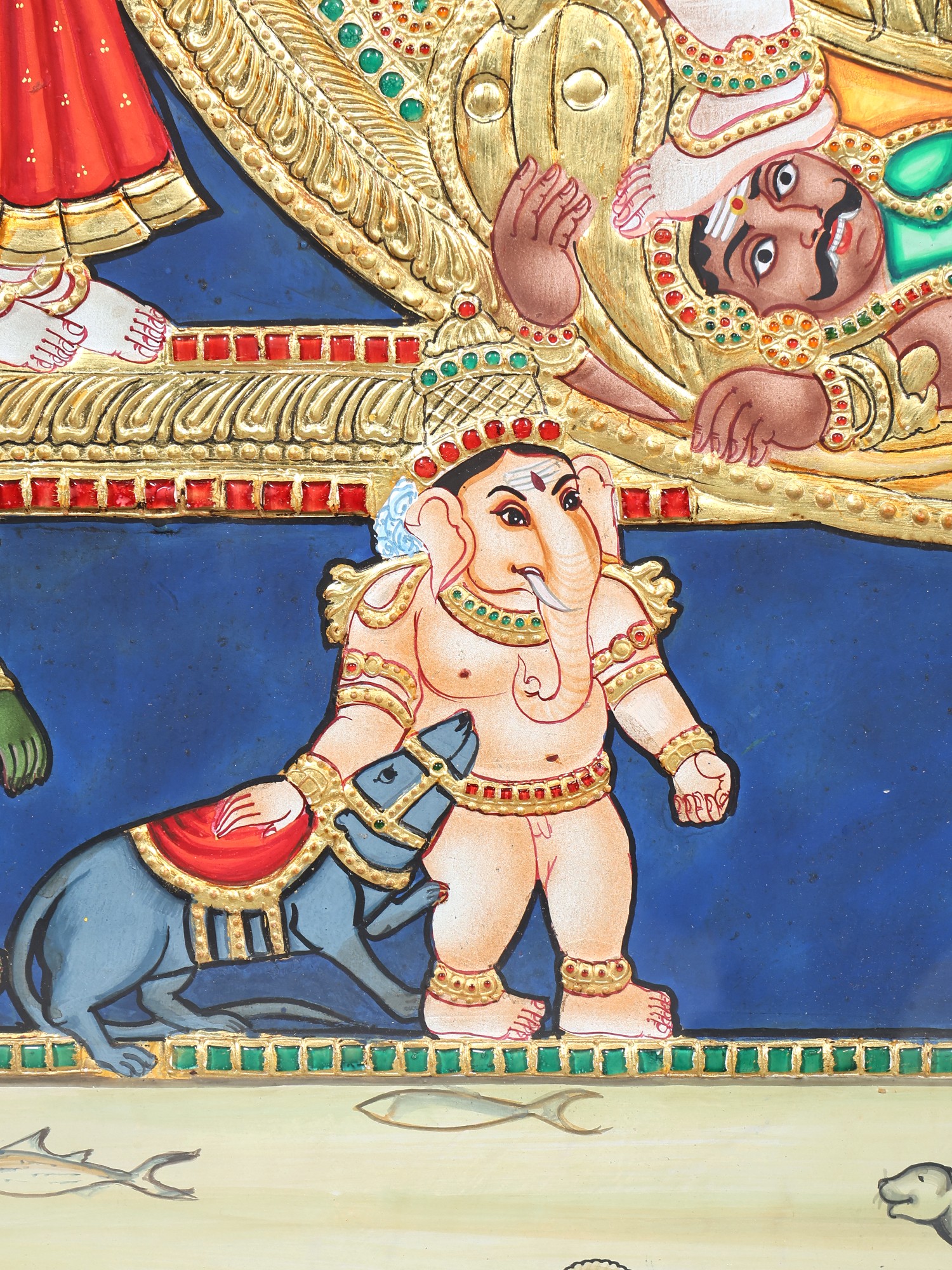 45" Lord Venkateshwara Gold Leaf Tanjore Painting with Frame