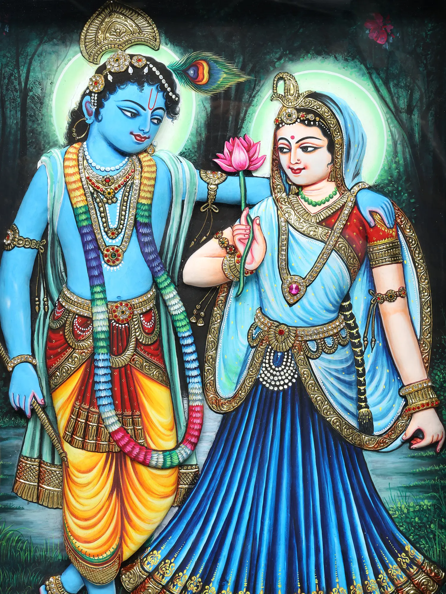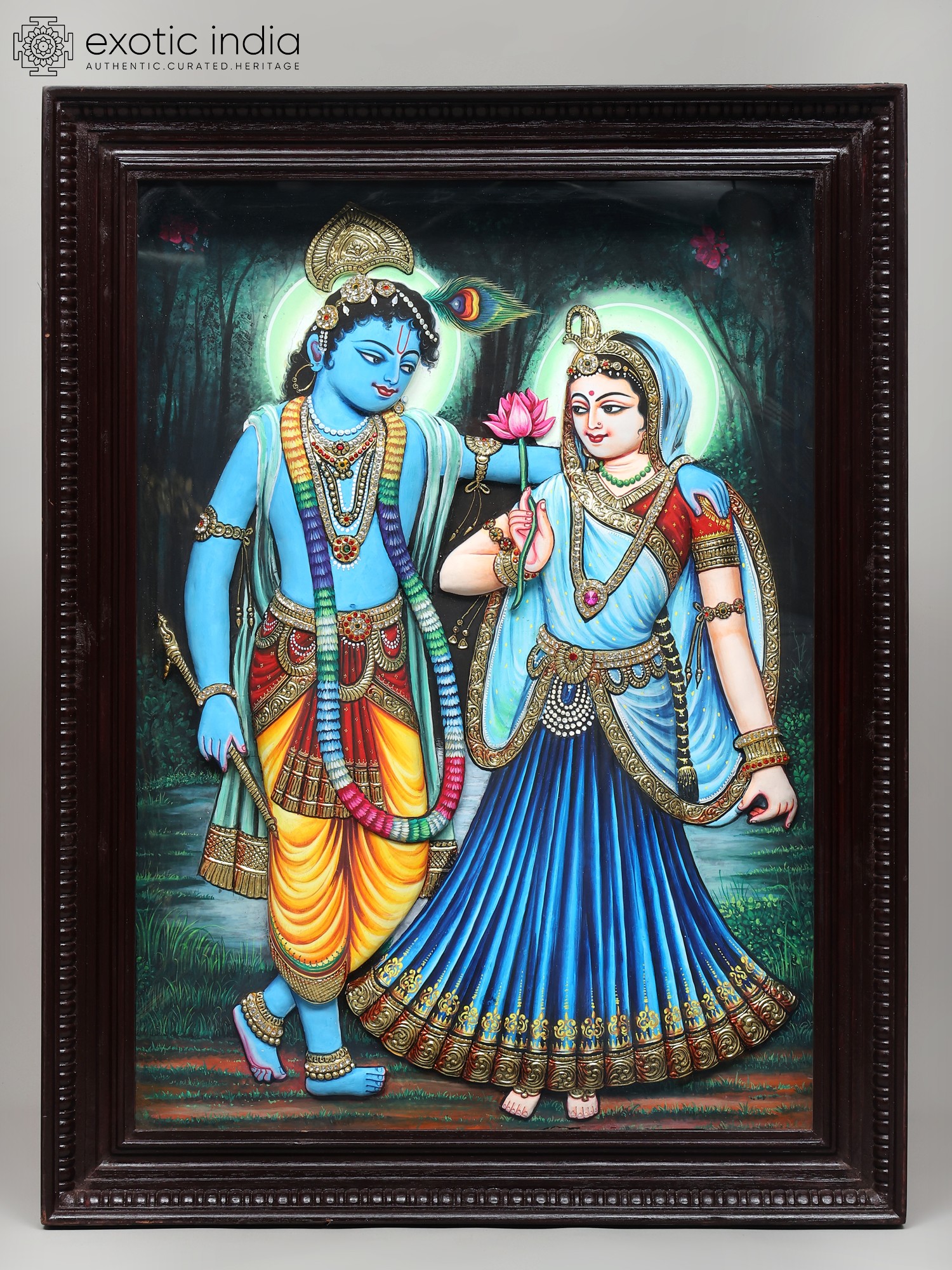 Standing Radha Krishna Tanjore Painting | Traditional Colors with 24 Karat Gold