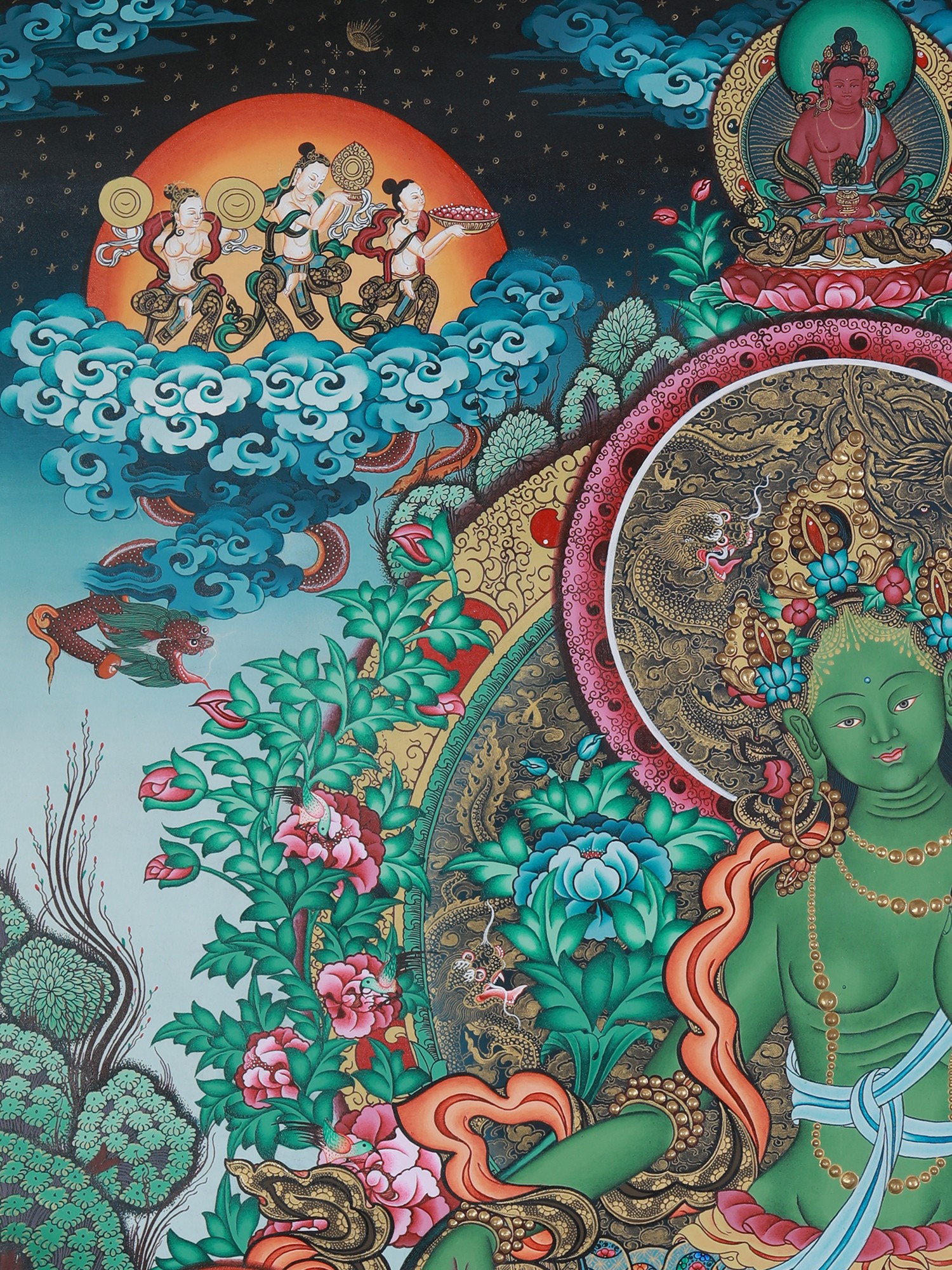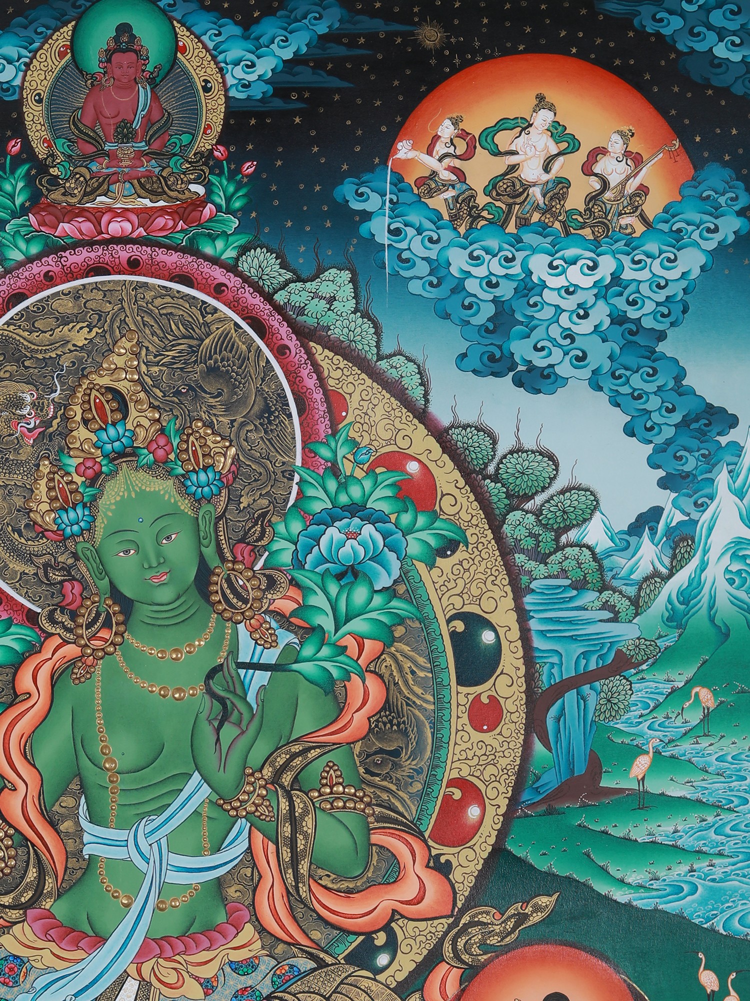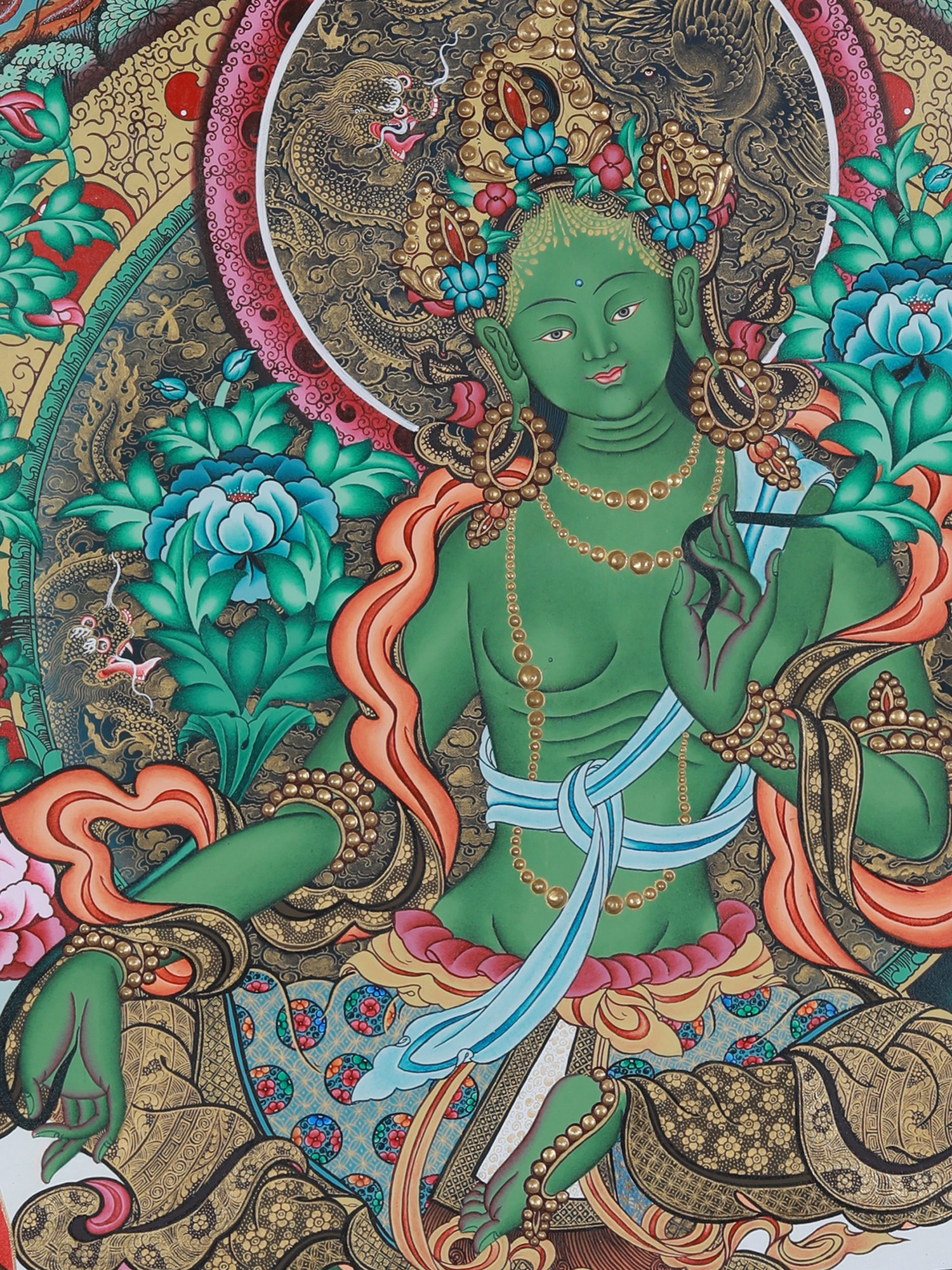 Newari Green Tara Mandala (Brocadeless Thangka)