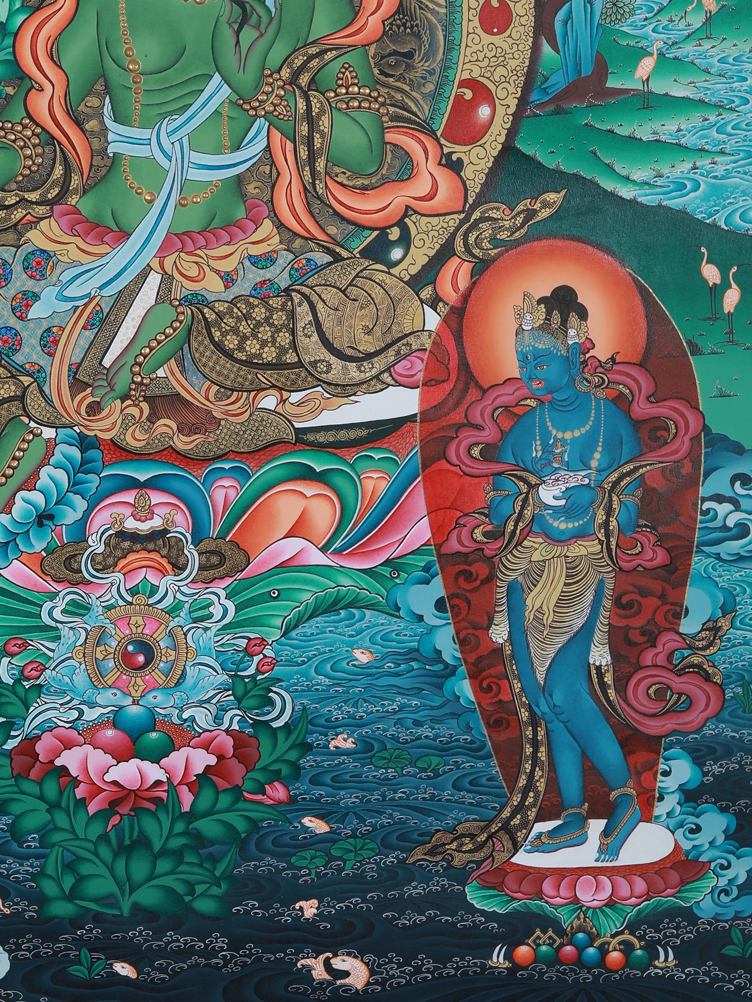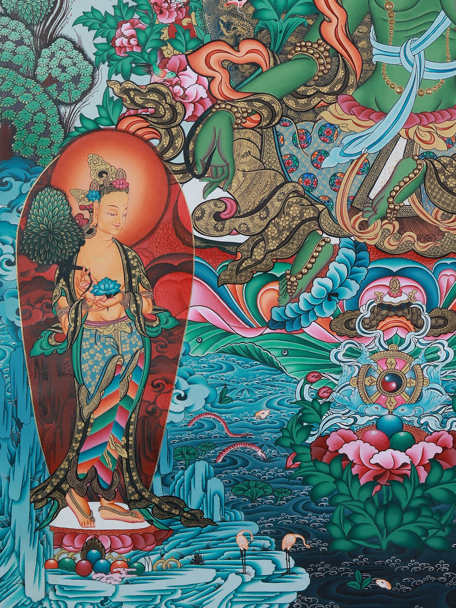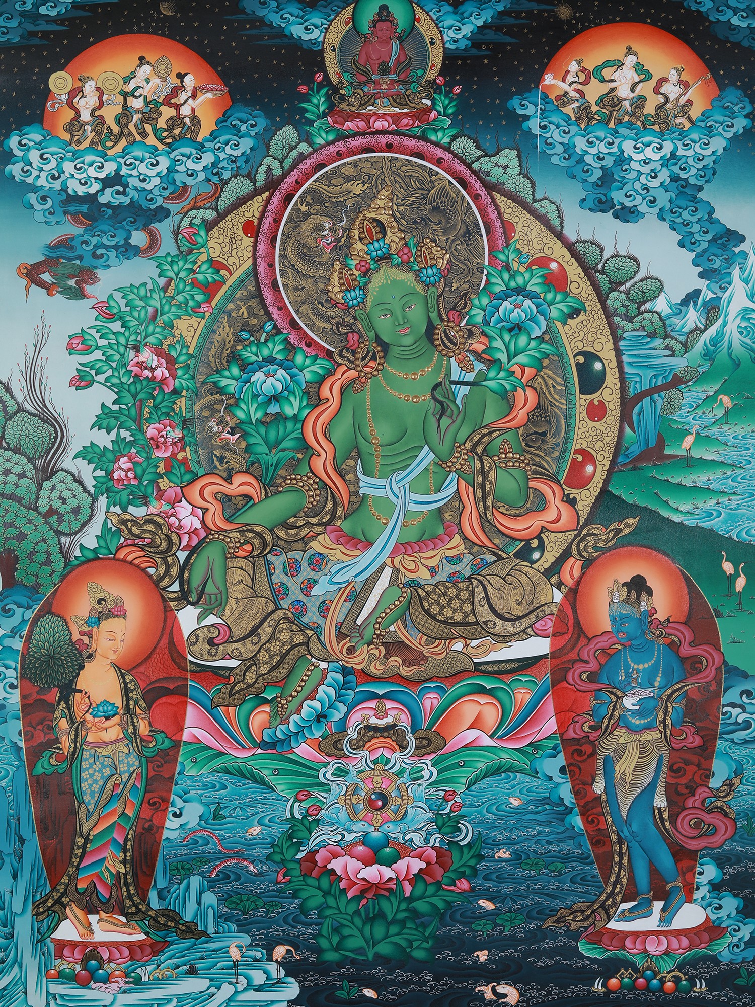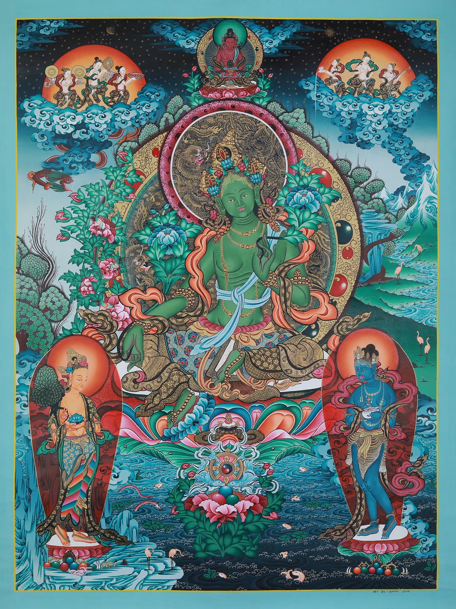 Newari Green Tara Mandala (Brocadeless Thangka)