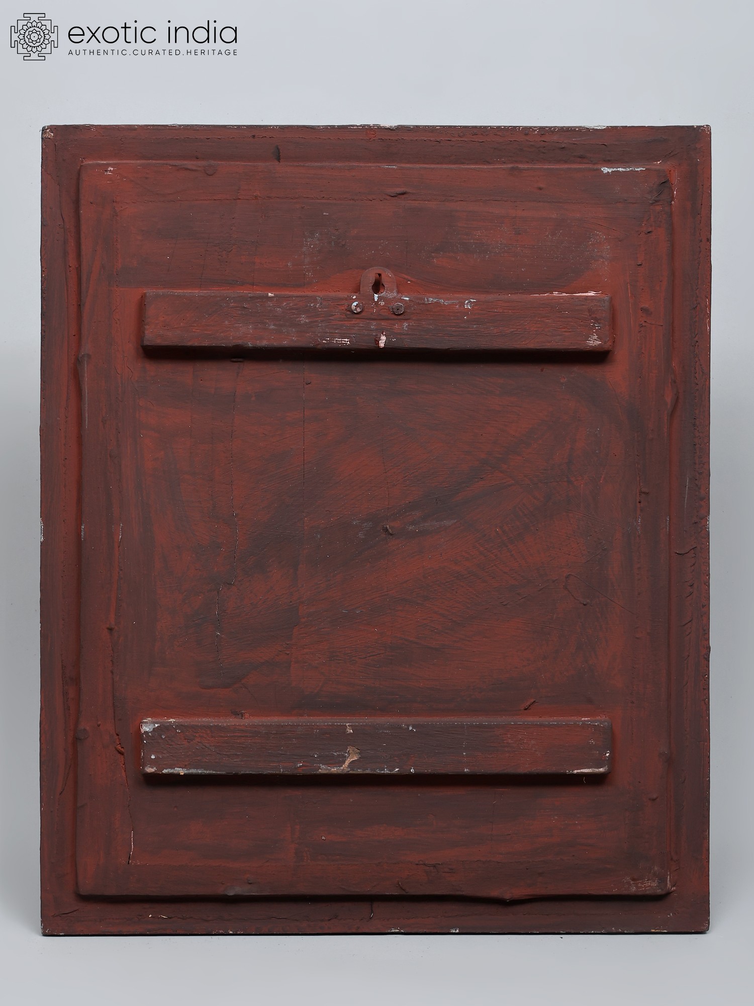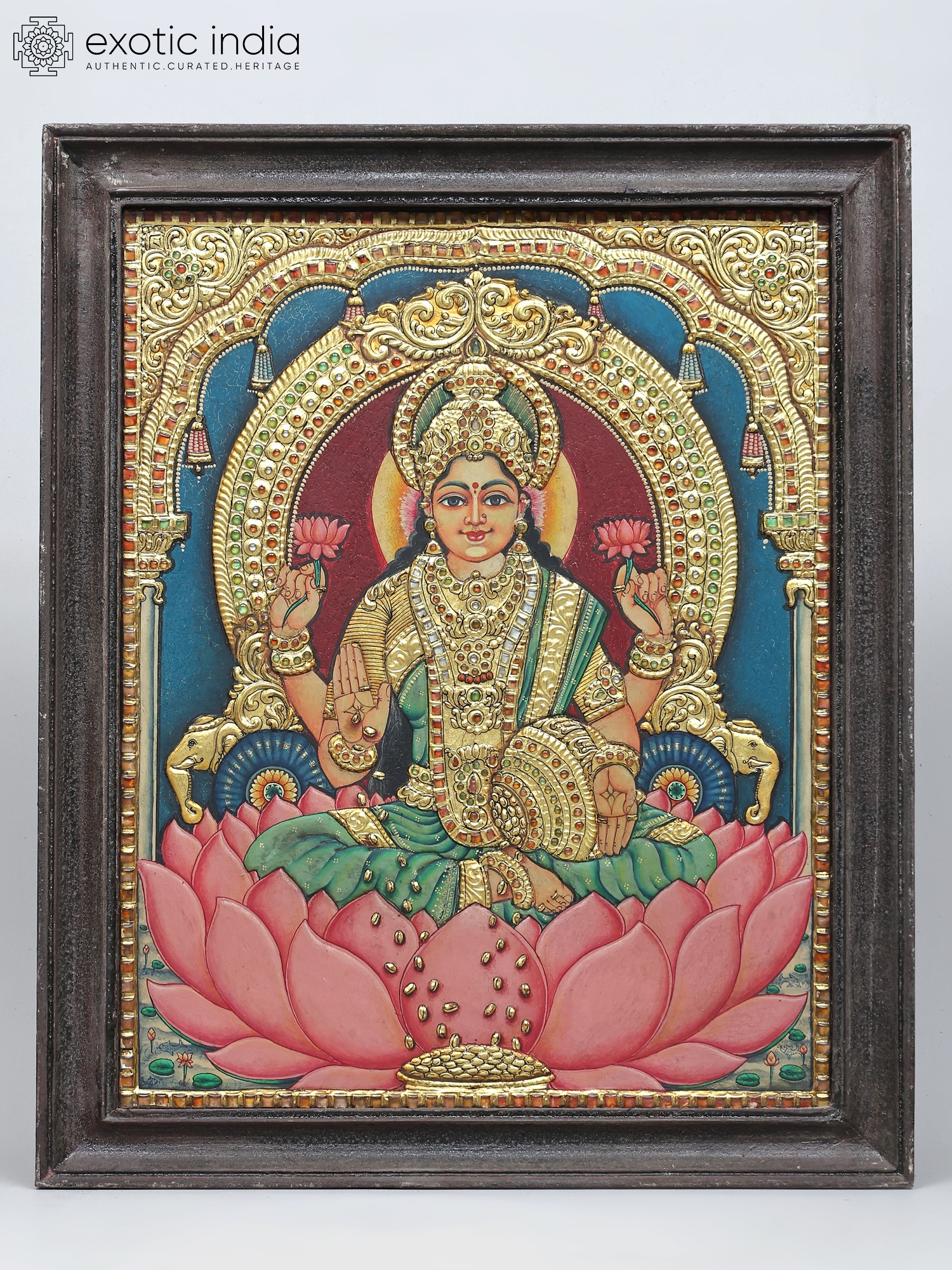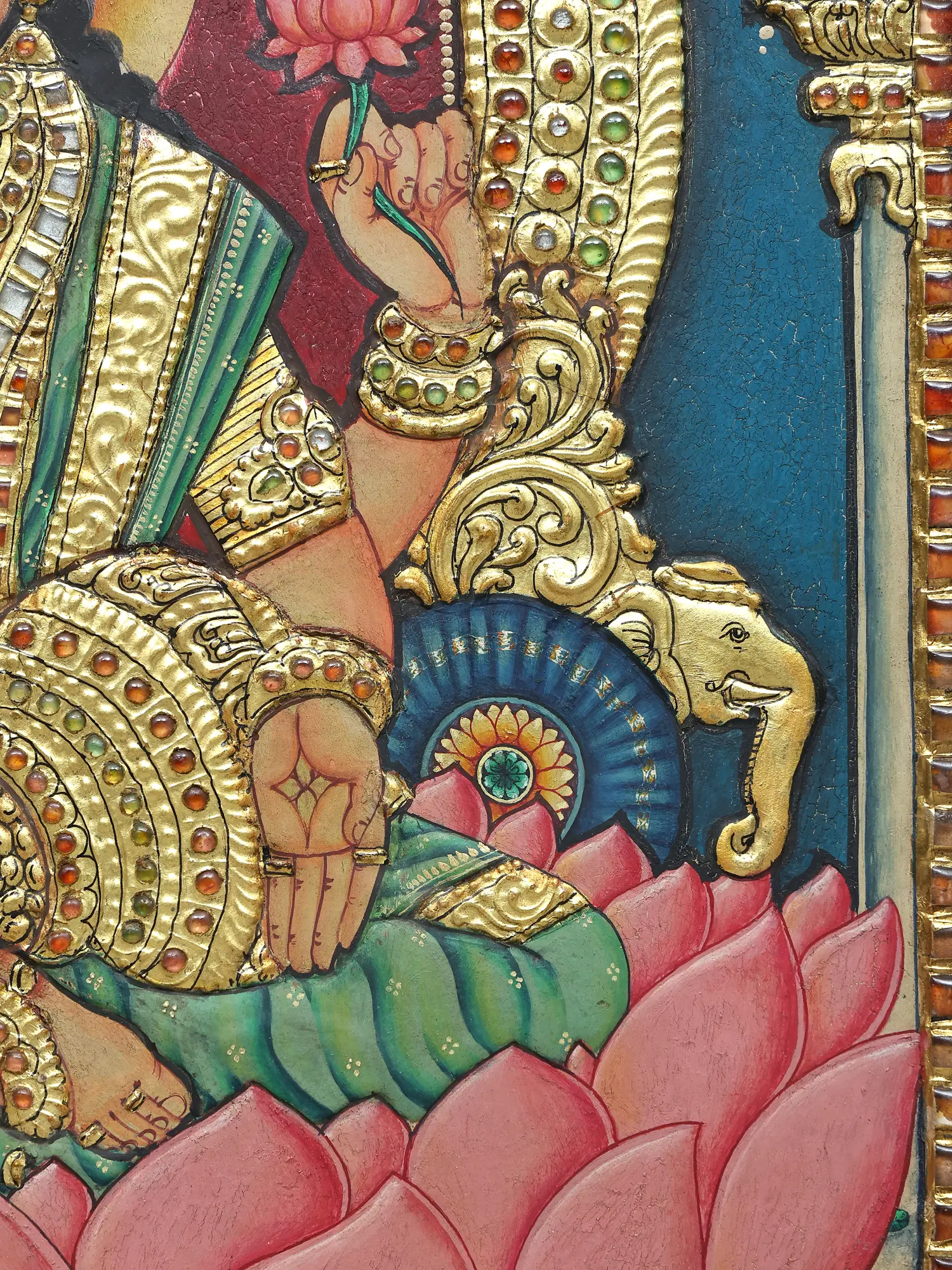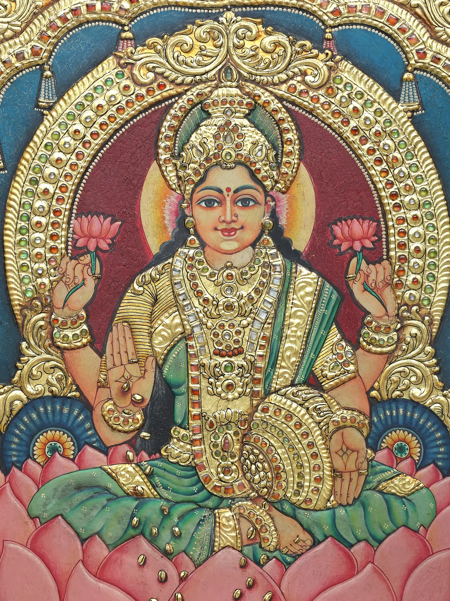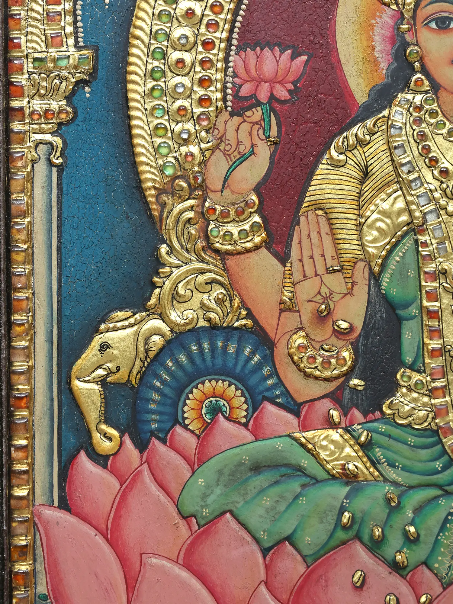 Embossed Three-Dimensional Vintage Tanjore Painting: Chaturbhuja Dhanalakshmi